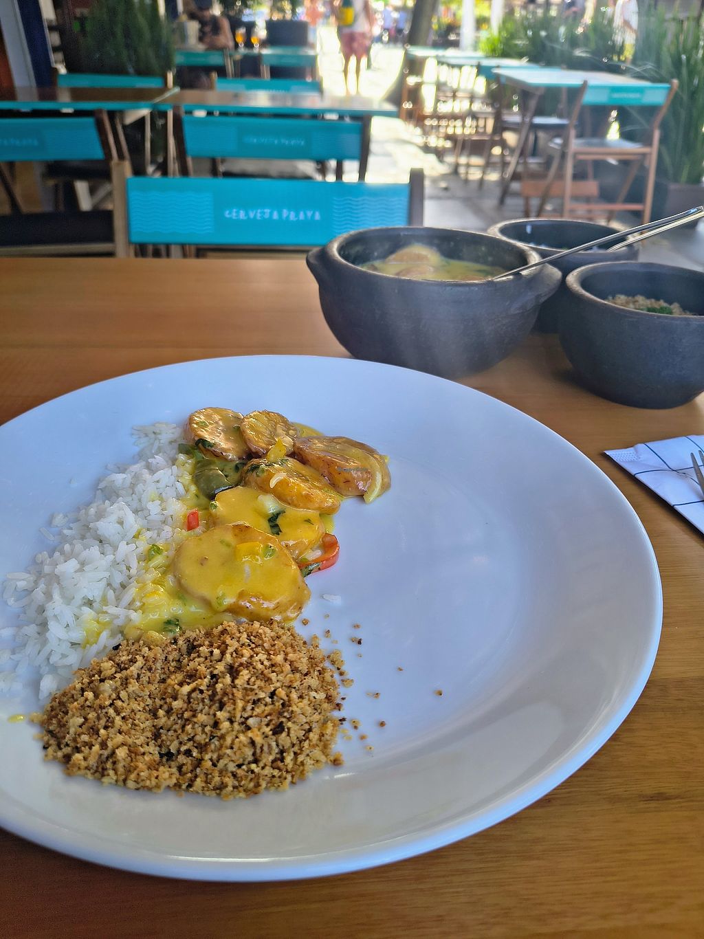 um dos poucos lugares de Búzios com opções vegetarianas e veganas (moqueca de banana da terra com leite de coco feio na casa)