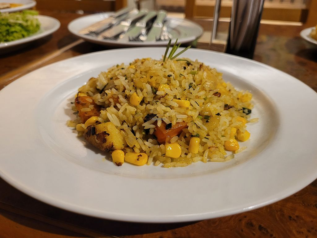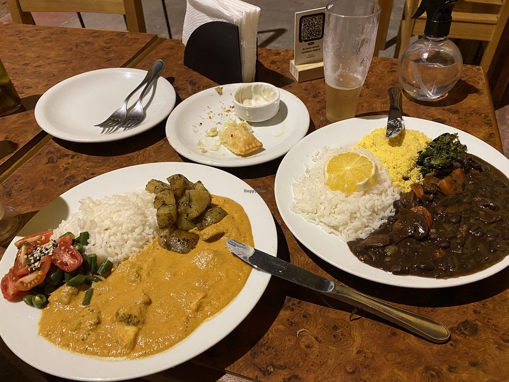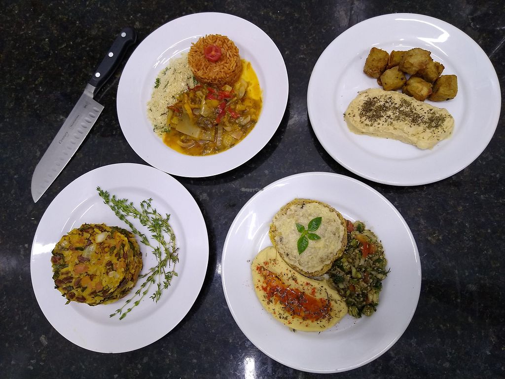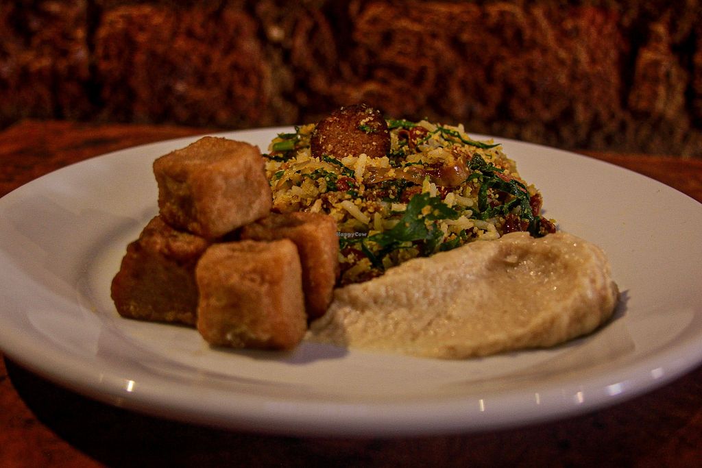 Vegan Vatapá (Bahia) with Cooked Corn Meal in cubes anda Baião (mixed …