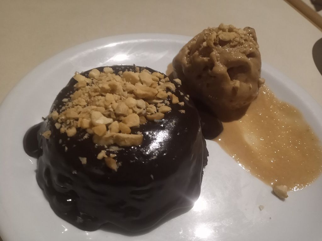 The glass is only covered with hazelnut cream on the outside. Not sure…