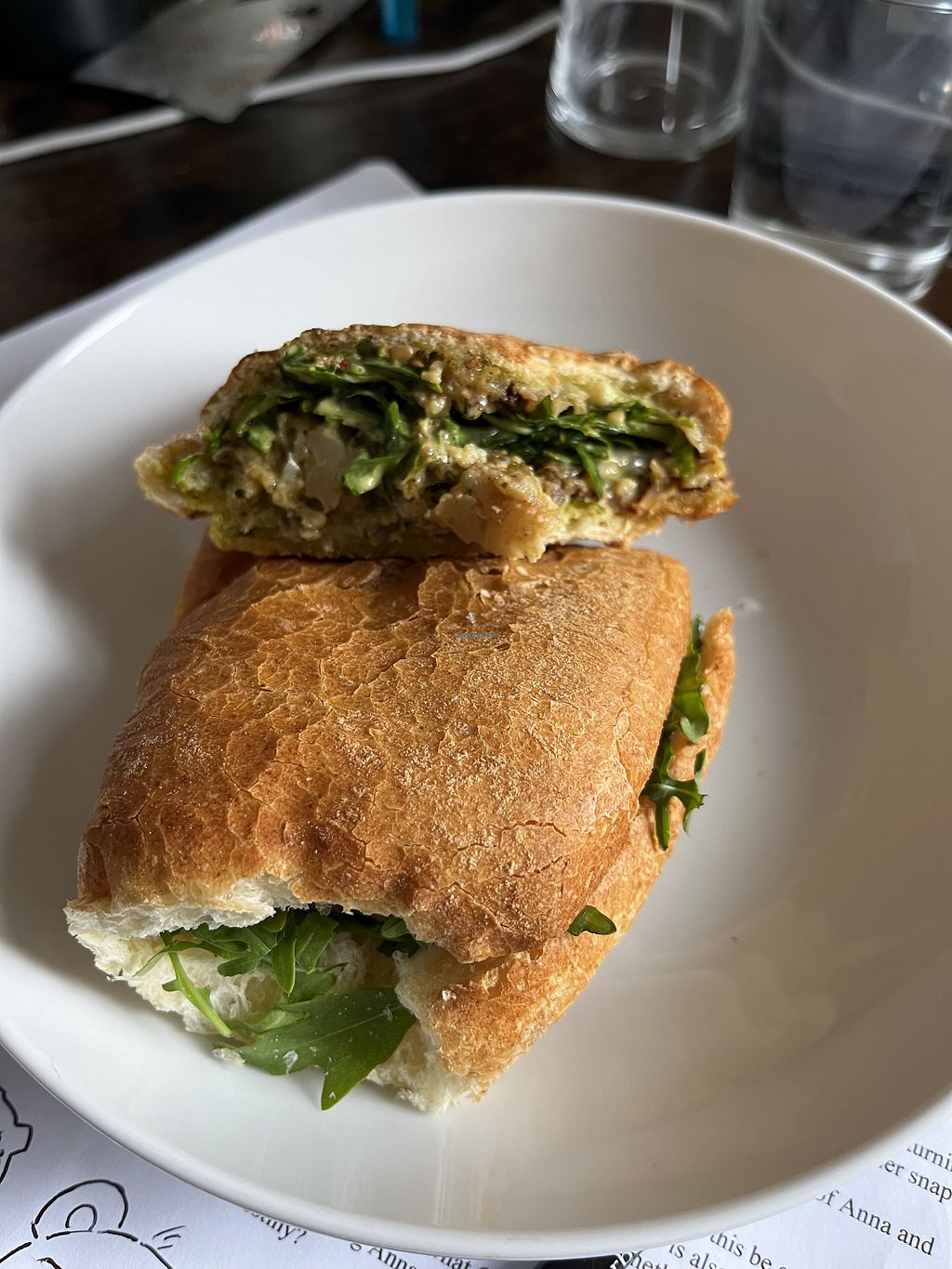 Love the vegan BLT (VLT) here- I get it quite regularly. It’s served in a ciabatta with vegan mayo, lettuce, tomato and bacon made from coconut flakes. Very unusual meat substitute and while it doesn’t taste anything like bacon, I think it tastes great!
