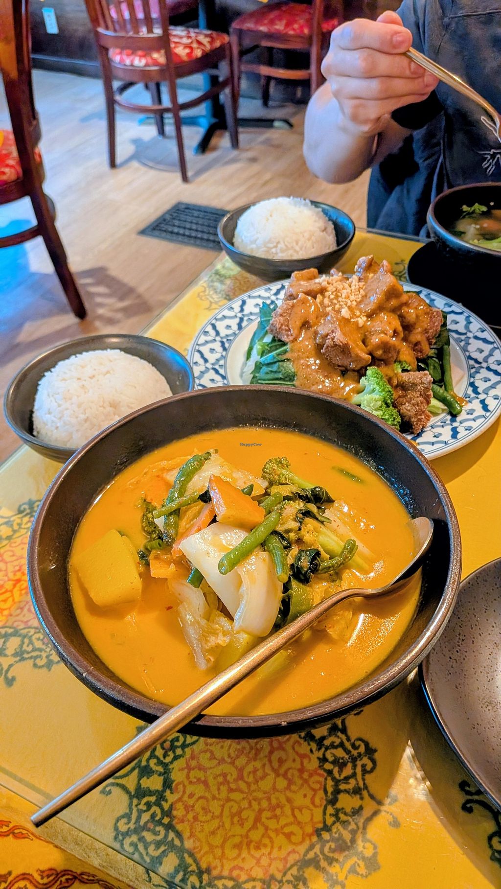 I heard about this particular Thai restaurant when one of my vegan friends shared their dishes on social media. She gave me recommendations and I got those said reccs of veggie summer rolls and no h duck with massaman curry. Absolutely flavorful the curry and the summer rolls were very fresh! You can even get Thai iced tea with coconut milk and it’s really good! The staff is also very nice and check on you and the decor is absolutely beautiful. They even sell their silverware for a great price. Definitely coming back!