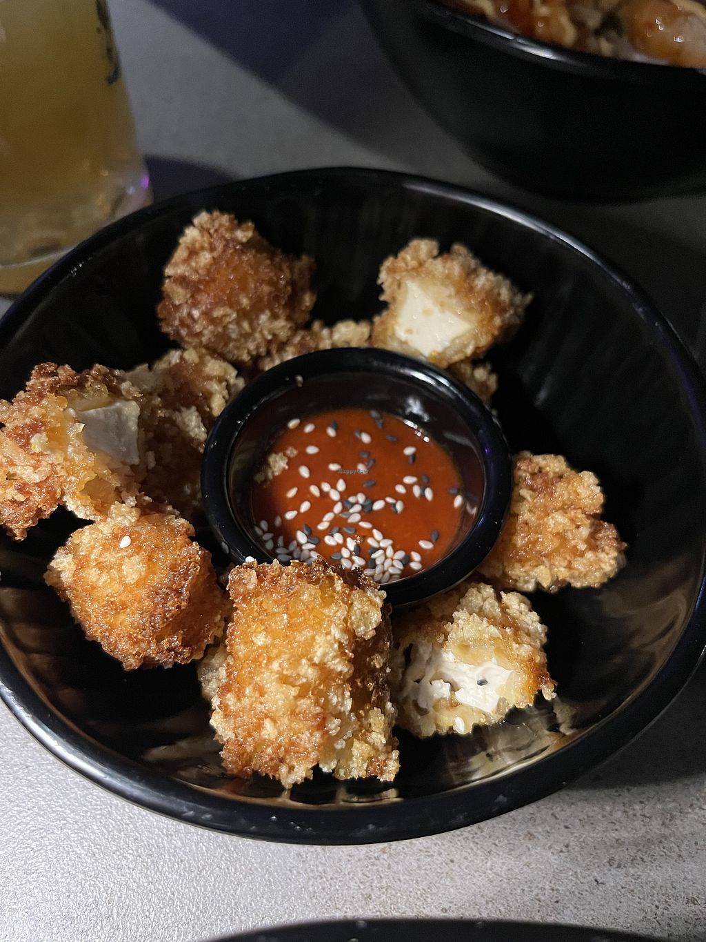Great food and drinks, very quick service but self serve only. Raspberry spritz was yummy. Got the bao burger set with crunchy tofu and all tasted amazing. Also veggie gyoza that was very good. Some non vegan but they are transitioning to fully vegan in the future.