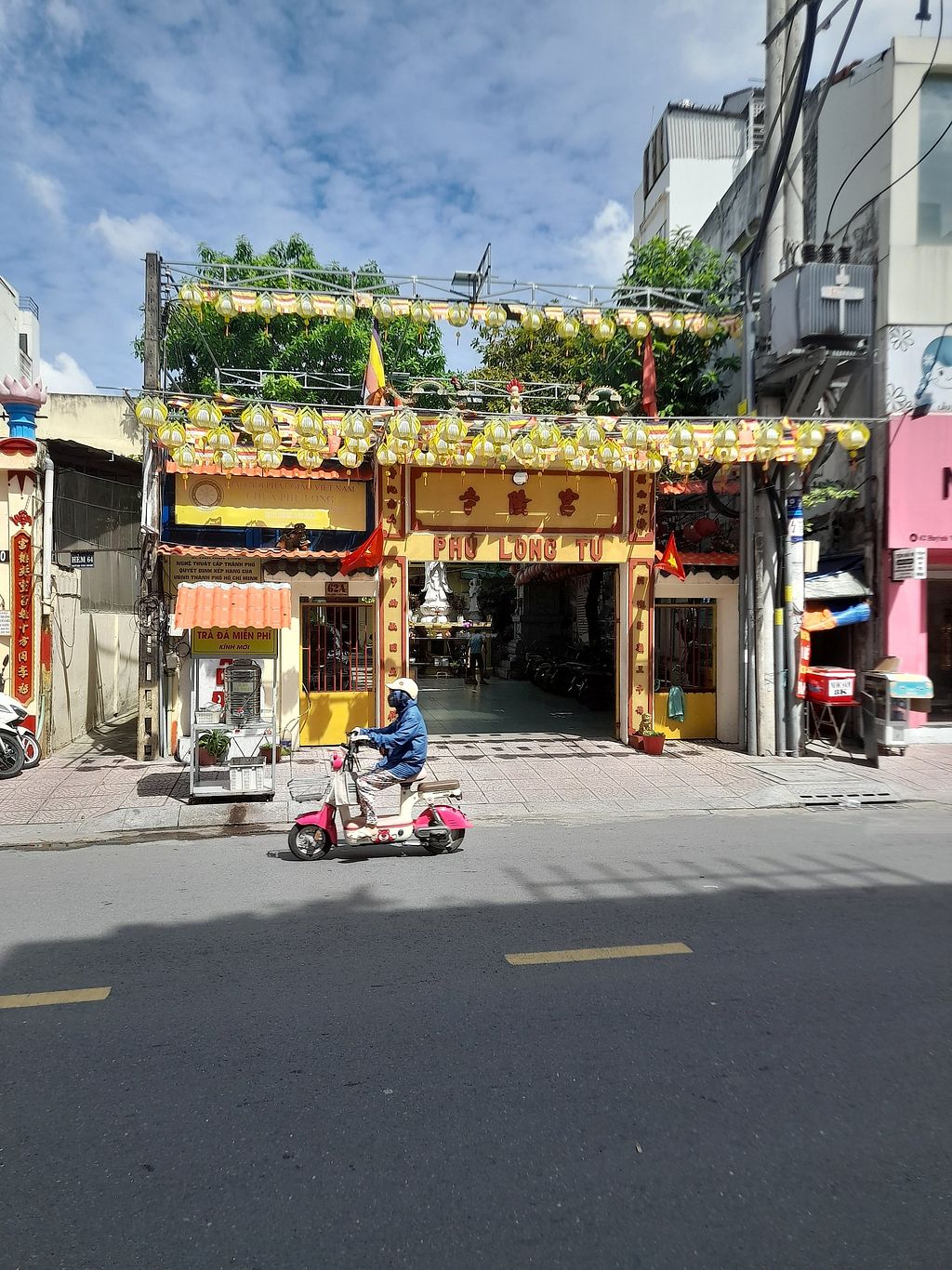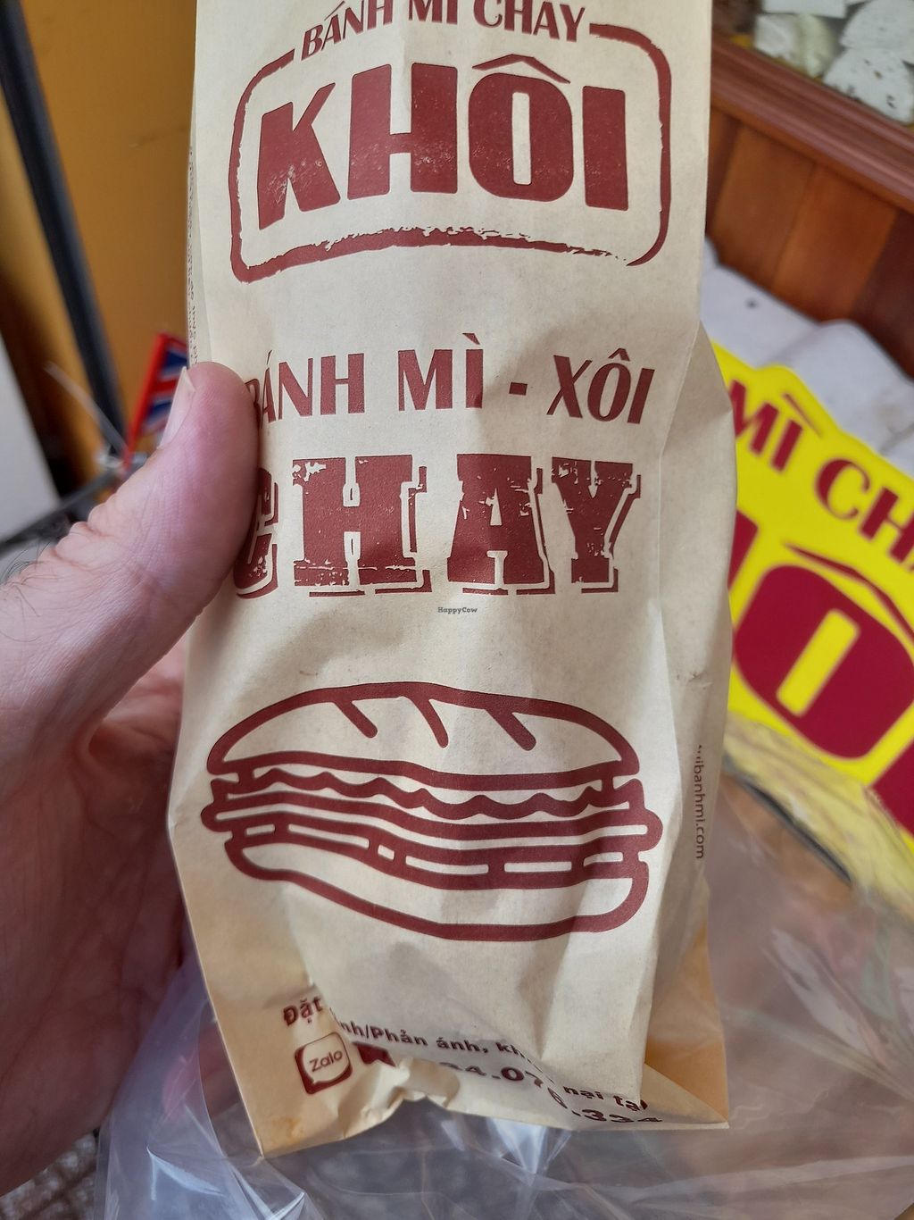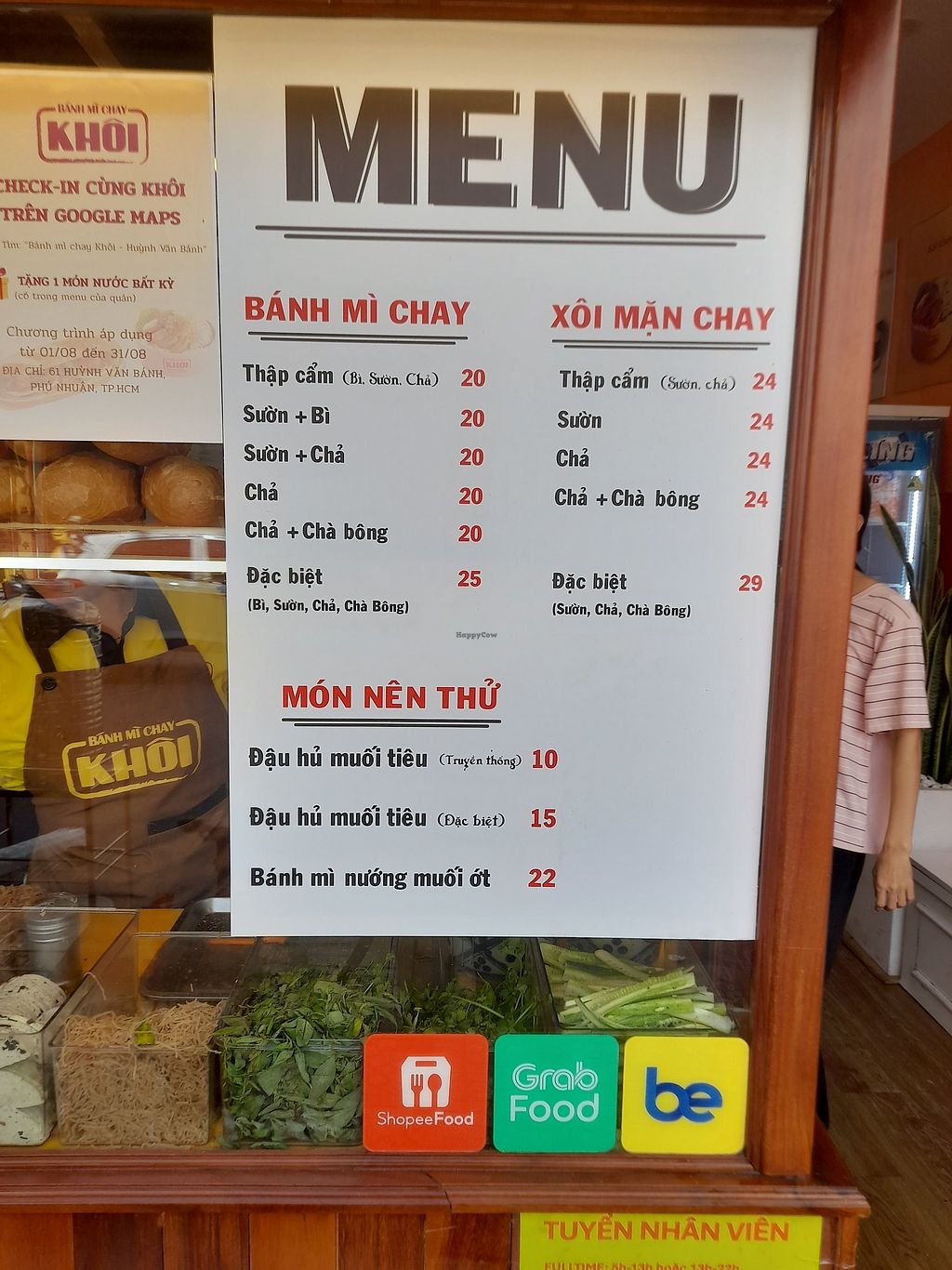 This one of a few of the same vegan banh mi eateries. I absolutely love the banh mi from this chain. Clean. Modern. Cheap. Friendly. Efficient. A small area for sitting inside. No English spoken and no menu in English. Highly recommend this chain. There might be one near you here in Saigon. I've found a few scattered around the city. Opposite a little temple.