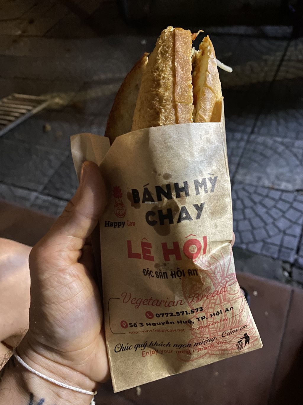 I have tried 3-4 popular vegan banh mi in Hoi An but this place is the best. Come back the third time, the recipe has improved. It makes her banh mi tastes quite the same with the famous vegan banh mi in Nha Trang I had tried before. The stall stands next to Snack Bar. The standard price is 10k but you can pay more for extra filling. The ingredients aren’t cooked with so much sugar like every other food place in Hoi An. Although the flavor is better if you take non-chili banh mi, which you would have to remind the owner at first. Owner is very friendly and can speak English. She has been vegan/vegetarian for 30 years. Feel good that I can support for some real vegan business.