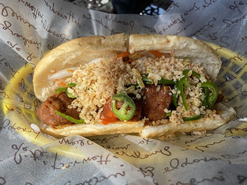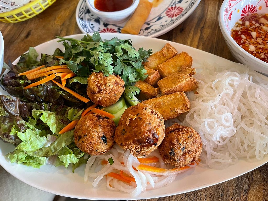 Finally I could eat vietnamese food again. I tried the vegan banh mi and it was stuffed with a lot of ingredients. You need to ask to remove the cilantro if you don't like it. But the spring rolls are store -bought, like you get them from a typical supermarket.