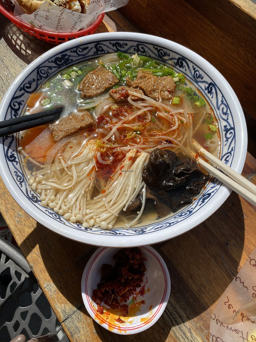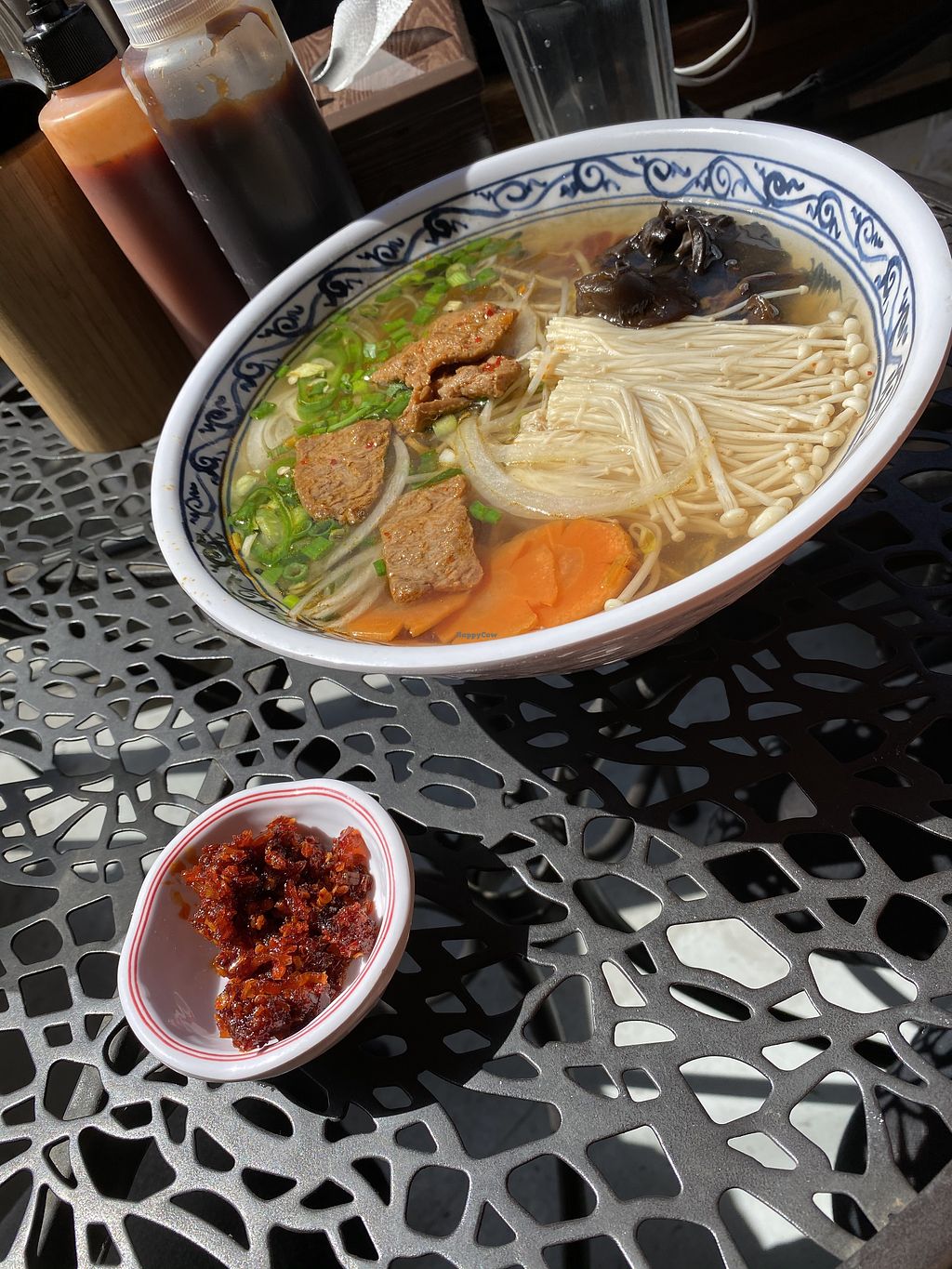 I ordered a vegan pho & got the vegan banh mi to-go. The pho was okay. I should have gotten more chili since it was really good but only asked for a tiny bit since I wasn’t sure how spicy it’d be. I didn’t eat the banh mi till way later (9 hours after I ordered it) but it was still super yummy! I’ll definitely be back for the banh mi!!
