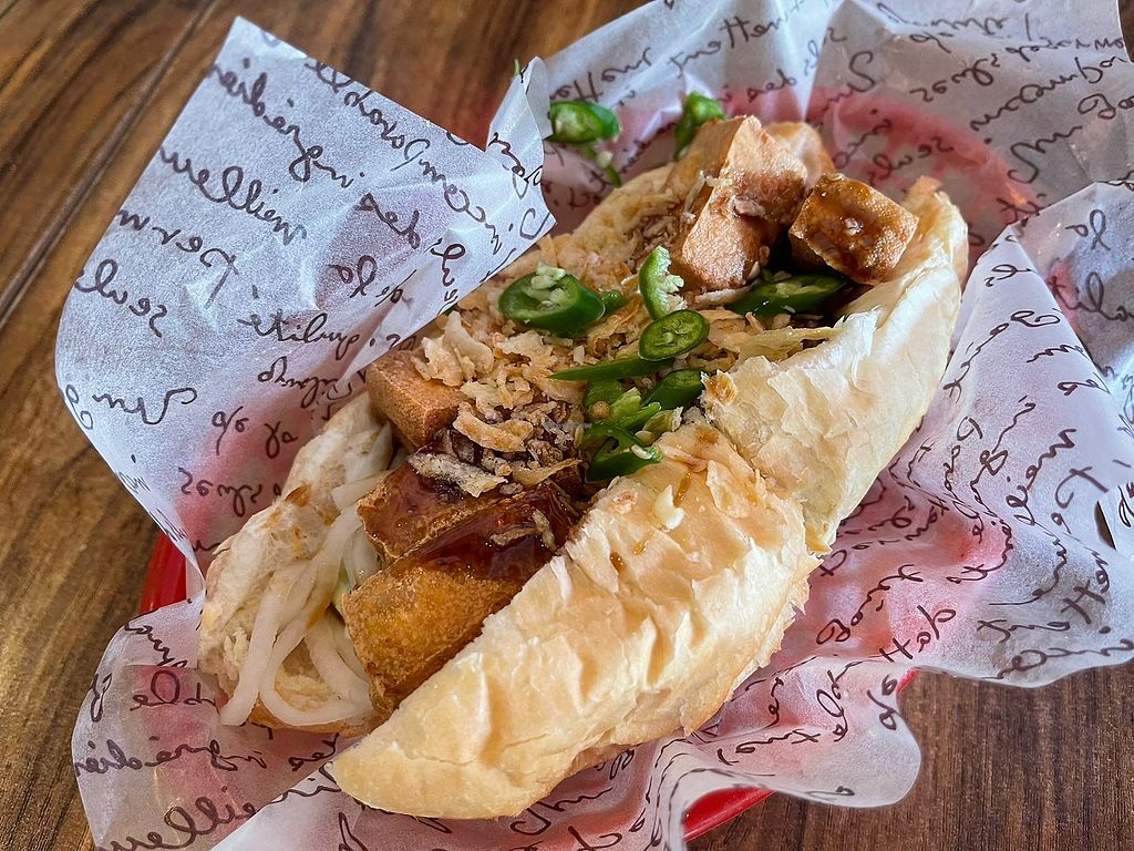 I tried vegan tofu banh mi and rice noodle. Tofu banh mi was the greatest thing. The baguette is very delicious.