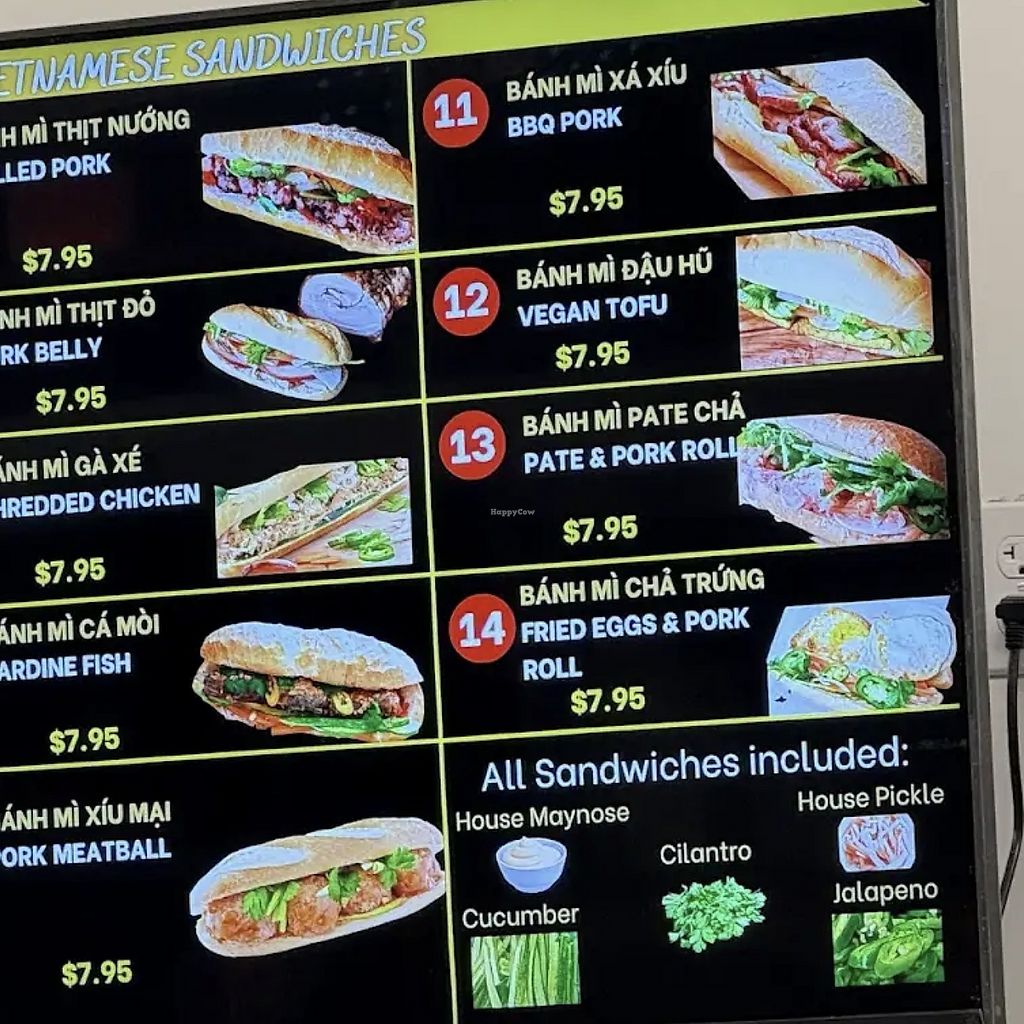 Lacto Ovo Vietnamese Honey Non-veg Serves meat, vegan options available. Vietnamese banh mi sandwich restaurant located inside the food court at Hung Vuong Food Market in Newark, Delaware. Offers a vegan tofu banh mi. Open Mon-Sun 8:30am-7:30pm. More