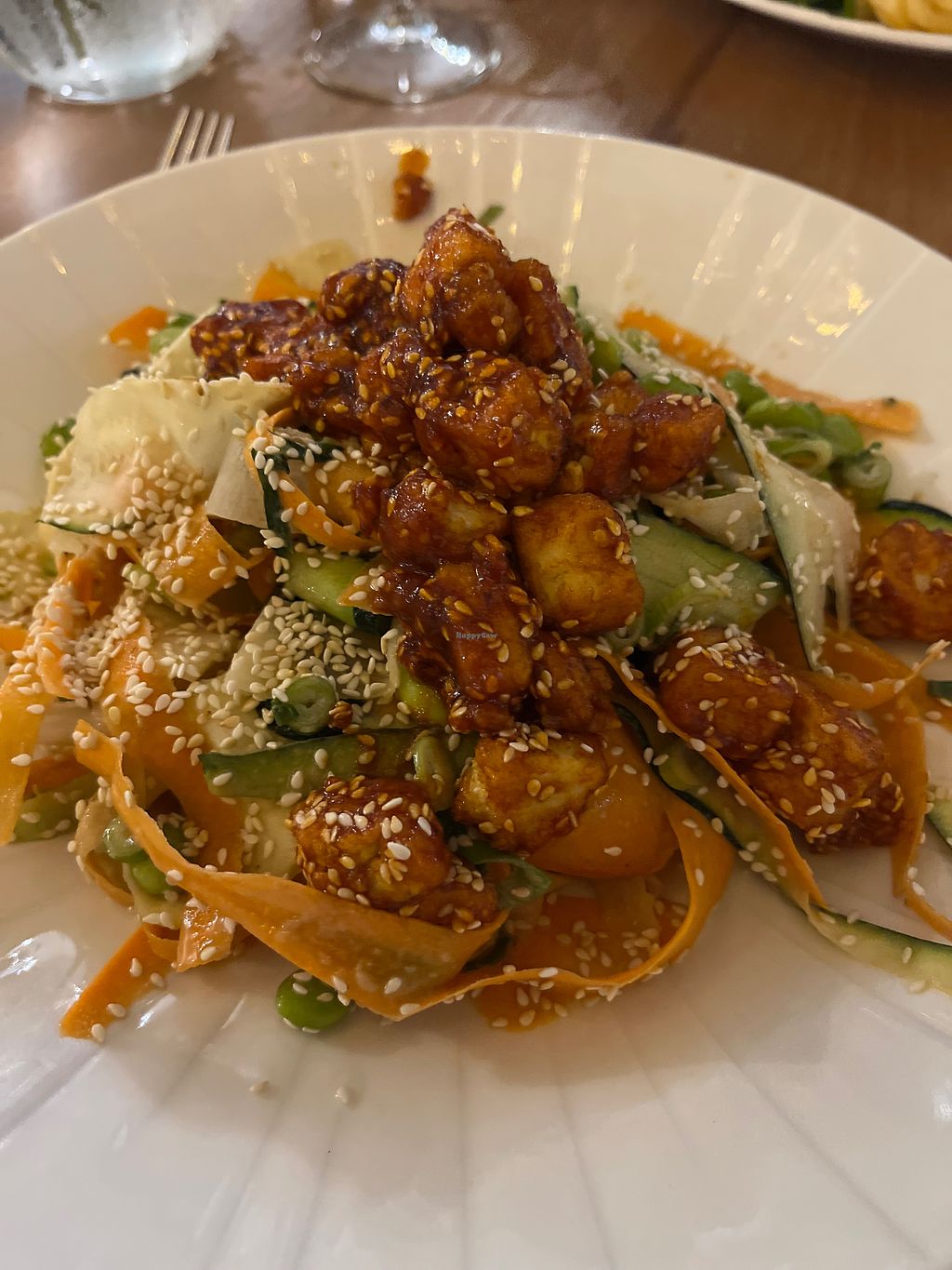 Vegan cream tea with vegan clotted cream. Spa uses vegan products. The Fold around the corner has a vegetarian restaurant and health shops.