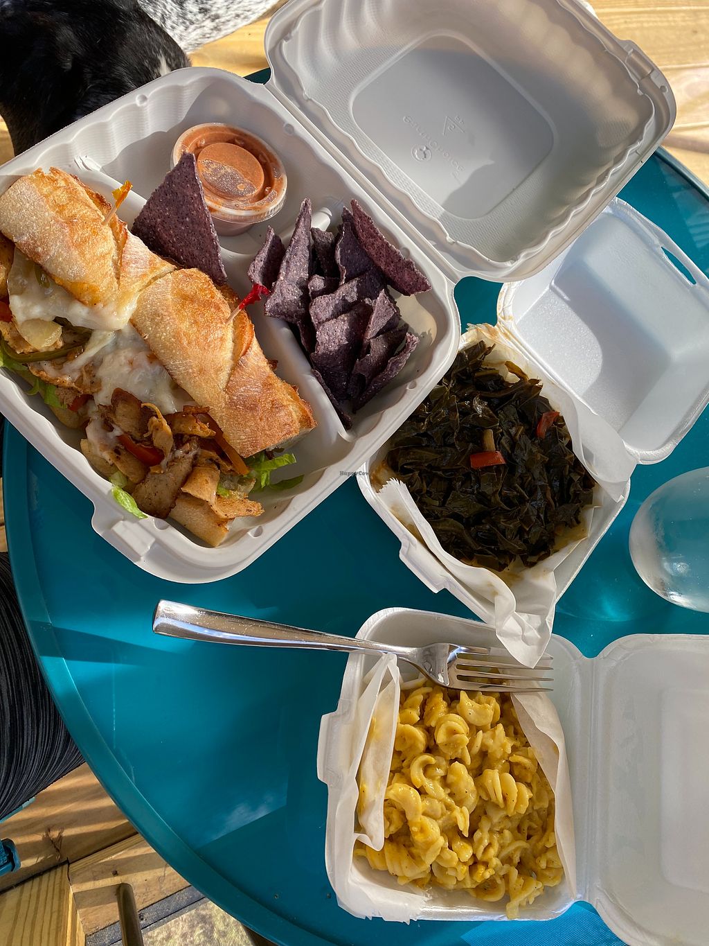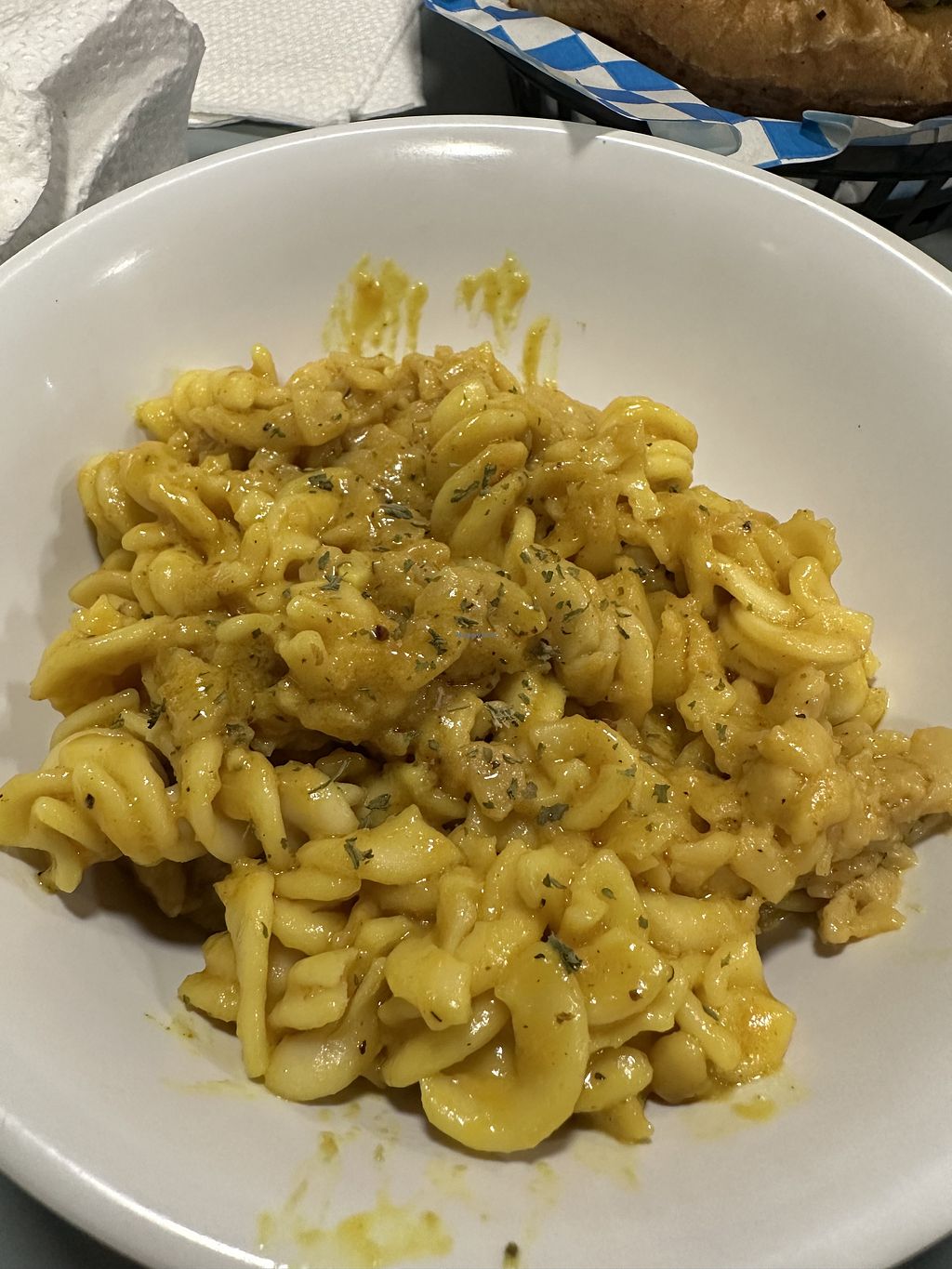 Food was yummy. Mac and cheese didn’t have a ton of flavor but still good.