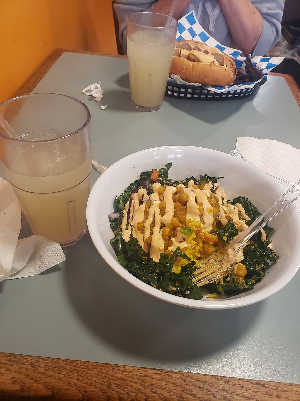 This was our first time here, and it definitely won’t be our last! The food was so good! We got the OG Chikin Sandwich and the Jerk Burrito. Both were incredible! So flavorful! The burrito was very spicy, even for my husband who loves spicy foods. It took a while to get our food because everything is made fresh…like we like it. It’s worth the wait! The chef and person who took our order were both kind and helpful. Great music was playing. We just loved this place!