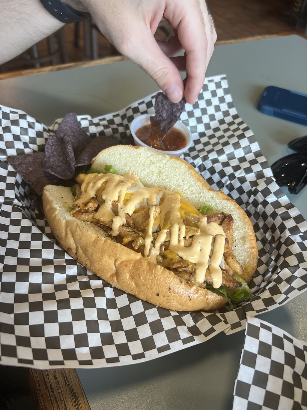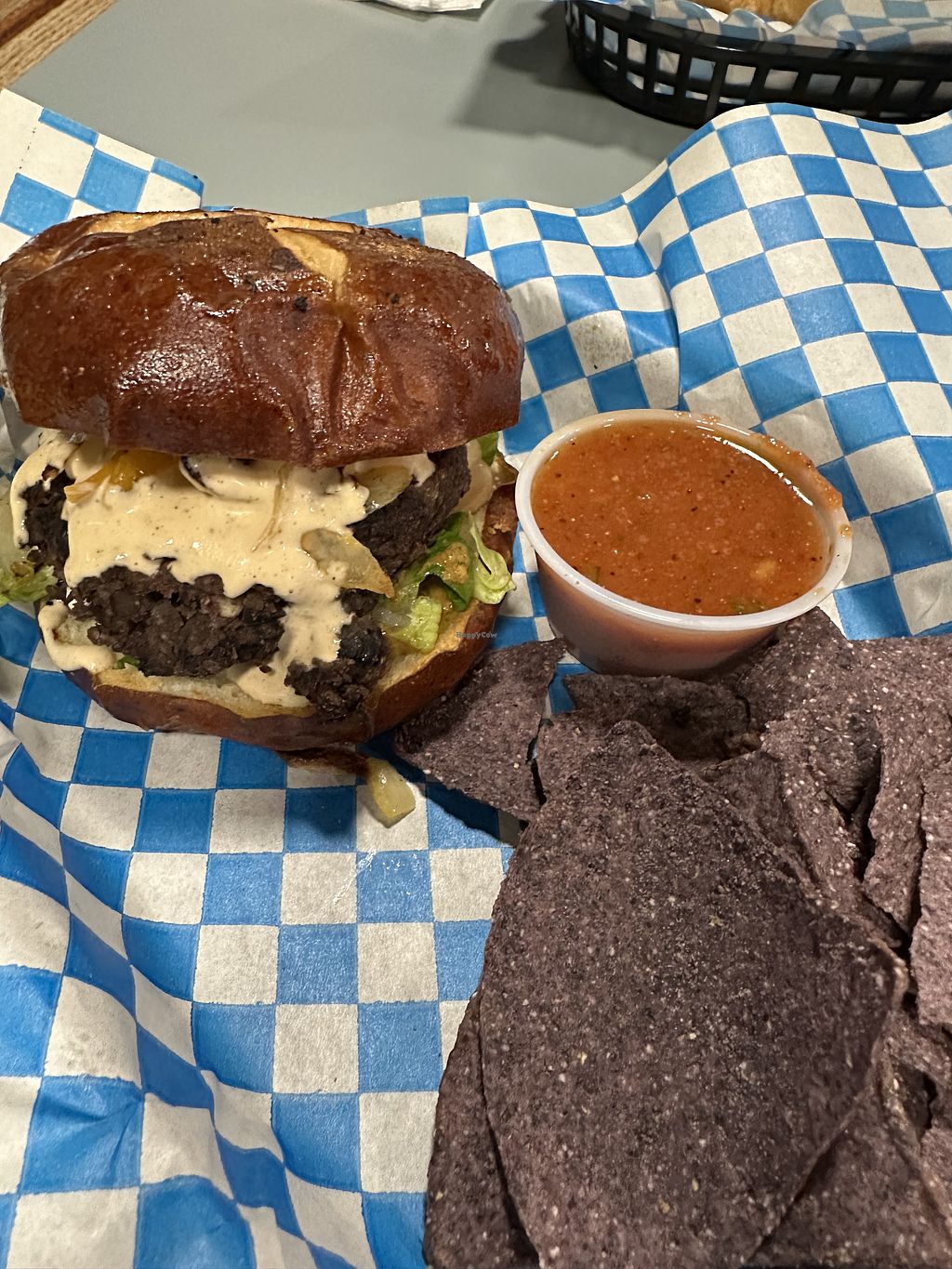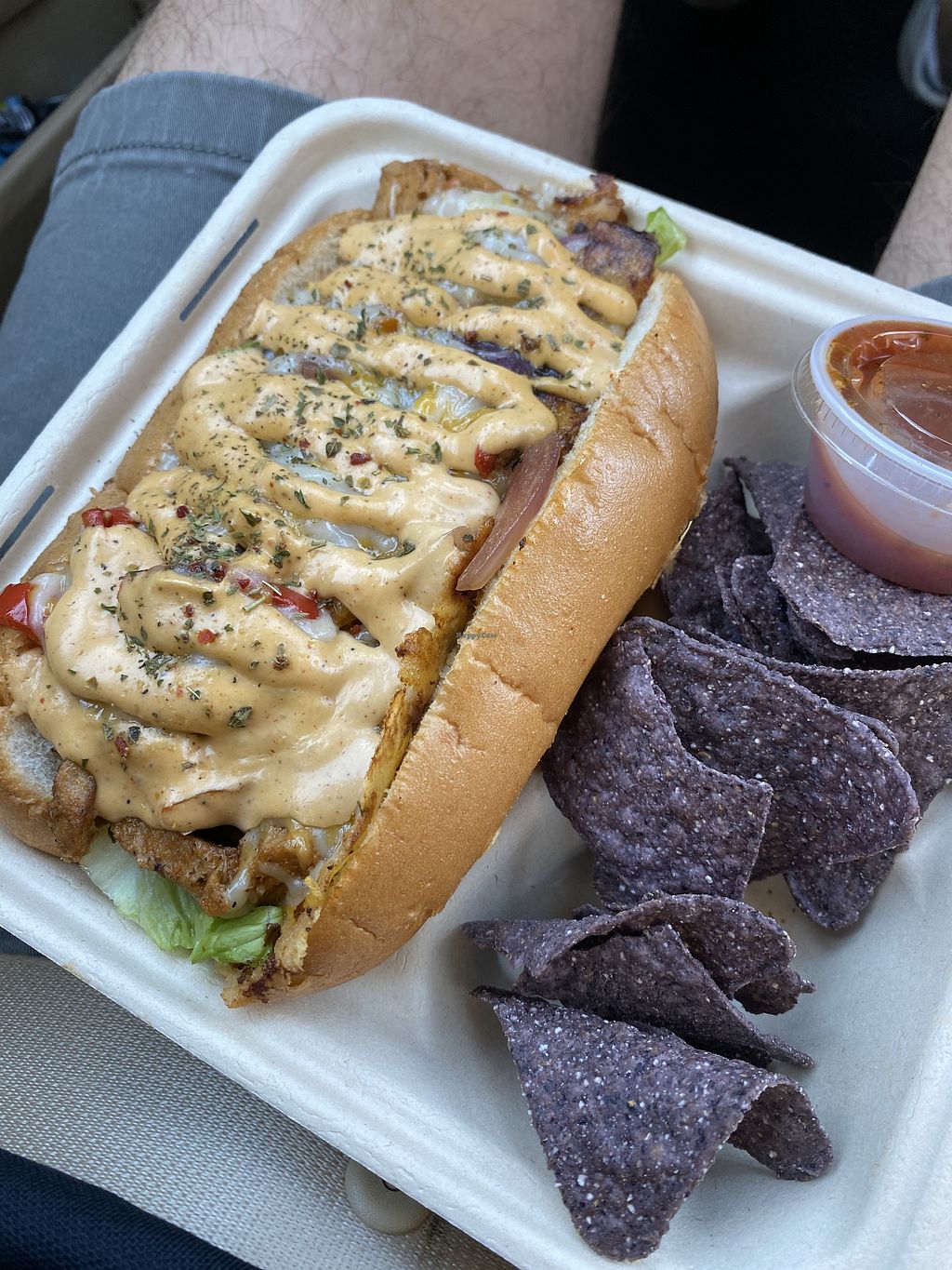 I got the banu burger with the chips and salsa as a side. Burger was delicious, I asked for light sauce and it was perfect. I also got the Mac and cheese, which I don’t usually get out because I feel like it’s hard to find a good vegan Mac but it was SO GOOD here. My wife got the philly cheese steak and loved it. One of the owners took our orders, cooked our food, and delivered it to our table. He was very friendly and helpful.