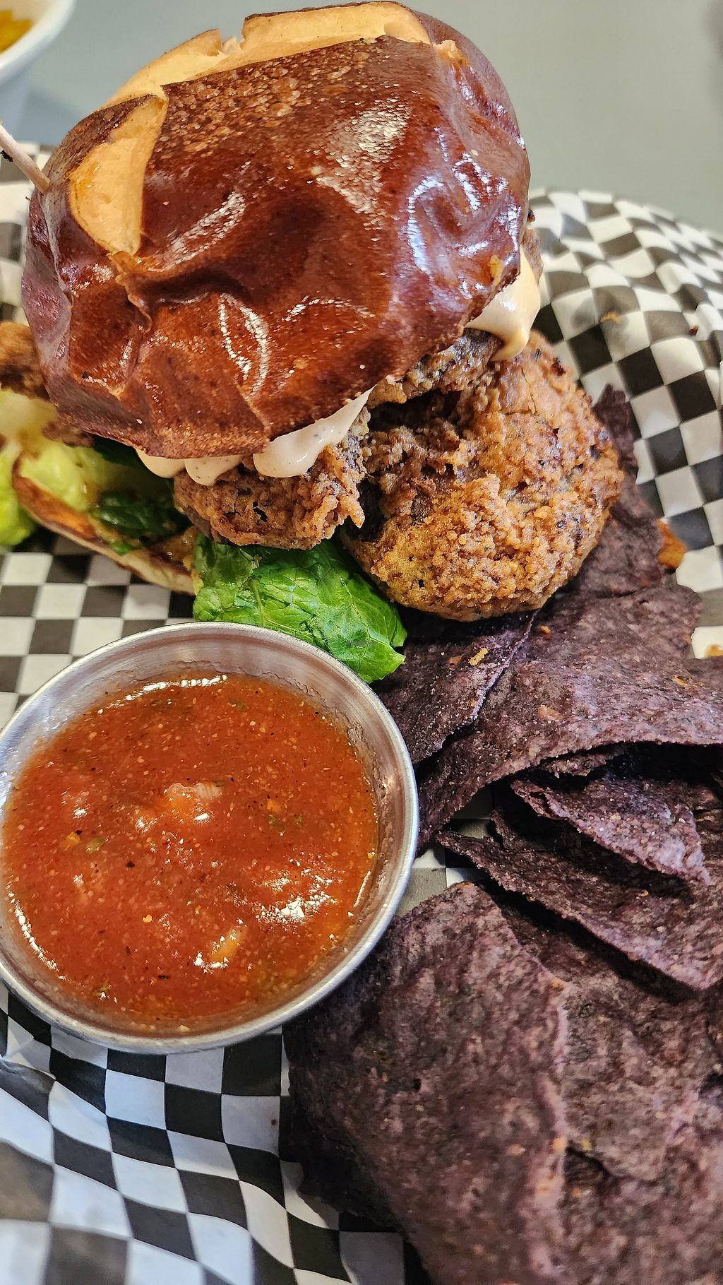 This place is a diamond in the rough. Very unassuming from the outside and not much to look at inside BUT THE FOOD!!! Easily some of the best vegan food I’ve ever had! The salsa is THE BEST I’ve ever tasted, hands down. I had the Philly Fake Steak and my husband had the black bean burger. No complaints. Don’t expect to get in and out fast because they’re doing a lot of business with a very small crew but they’re super nice and humble. Highly recommended!