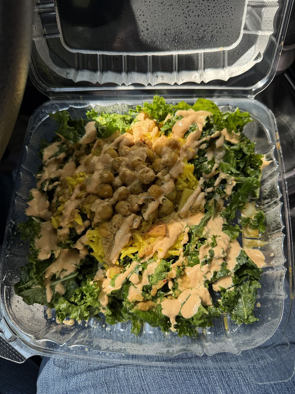 The location is not very attractive, right next to a gas station. But the food is very good and the counter service was very friendly. We got the powerhouse bowl, fries, OG chicken sandwich, mackin cheese, ginger drink, and a strawberry cheesecake cupcake. I've had better vegan mac n cheese, but the oyster mushroom chicken sandwich was DELISH and the cupcake was probably the best cupcake I've ever had! It had a creamy filling. I definitely recommend this place.