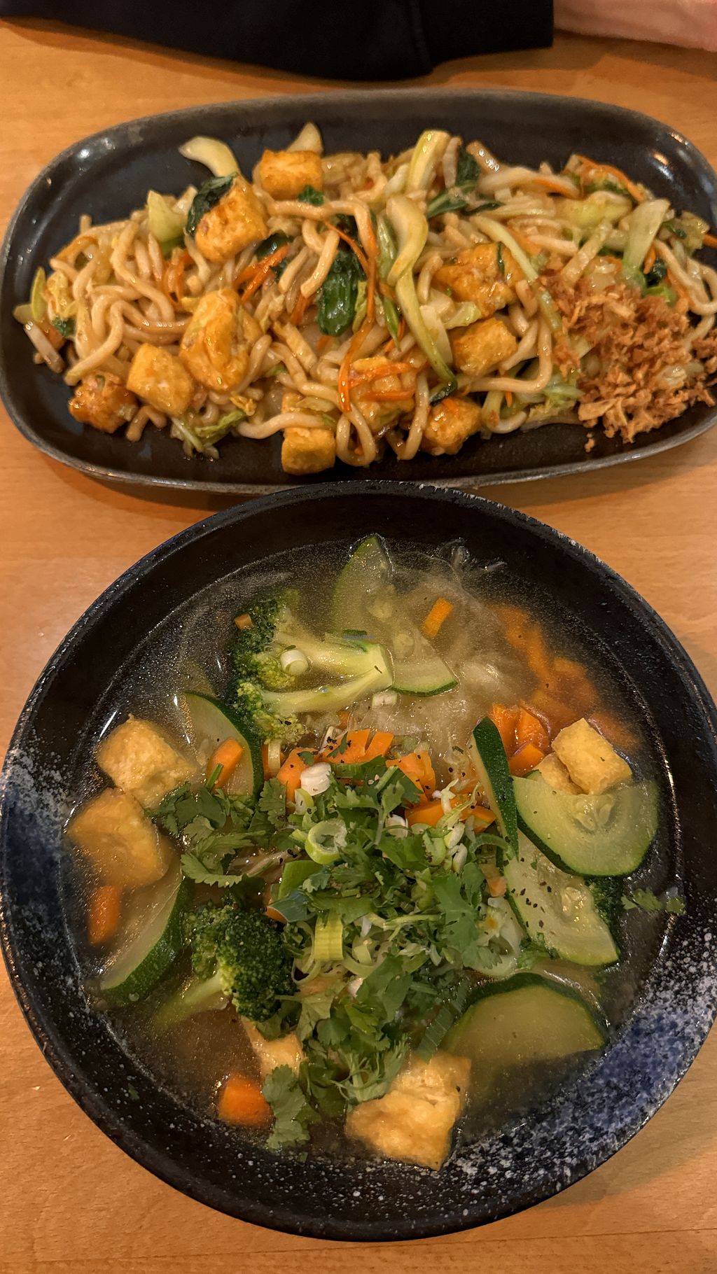 noodle soup & fried udon + tofu (both vegan)