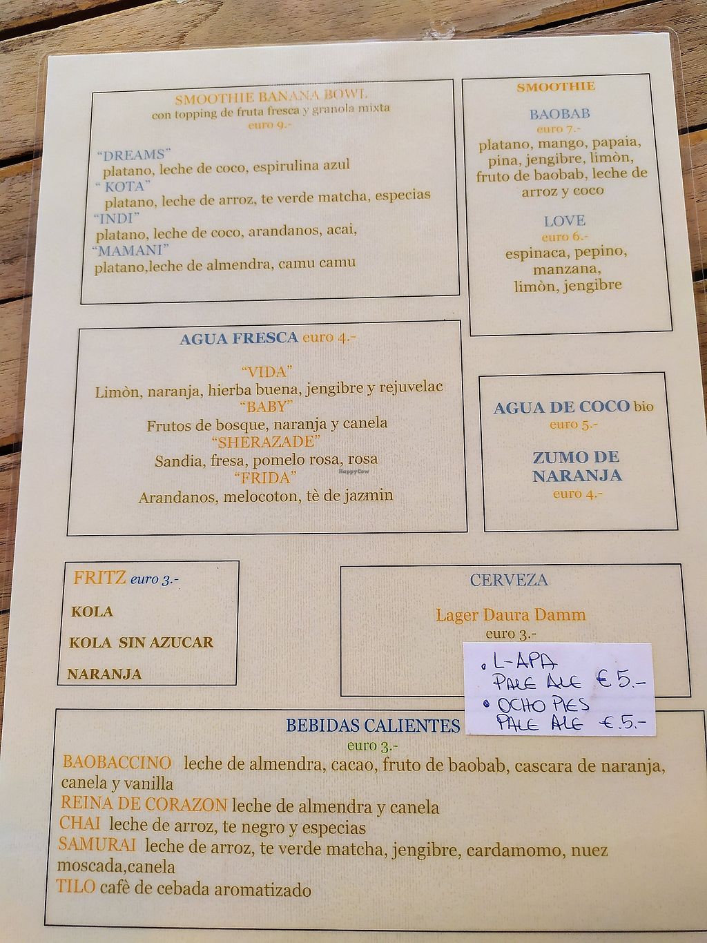 Carta bebidas