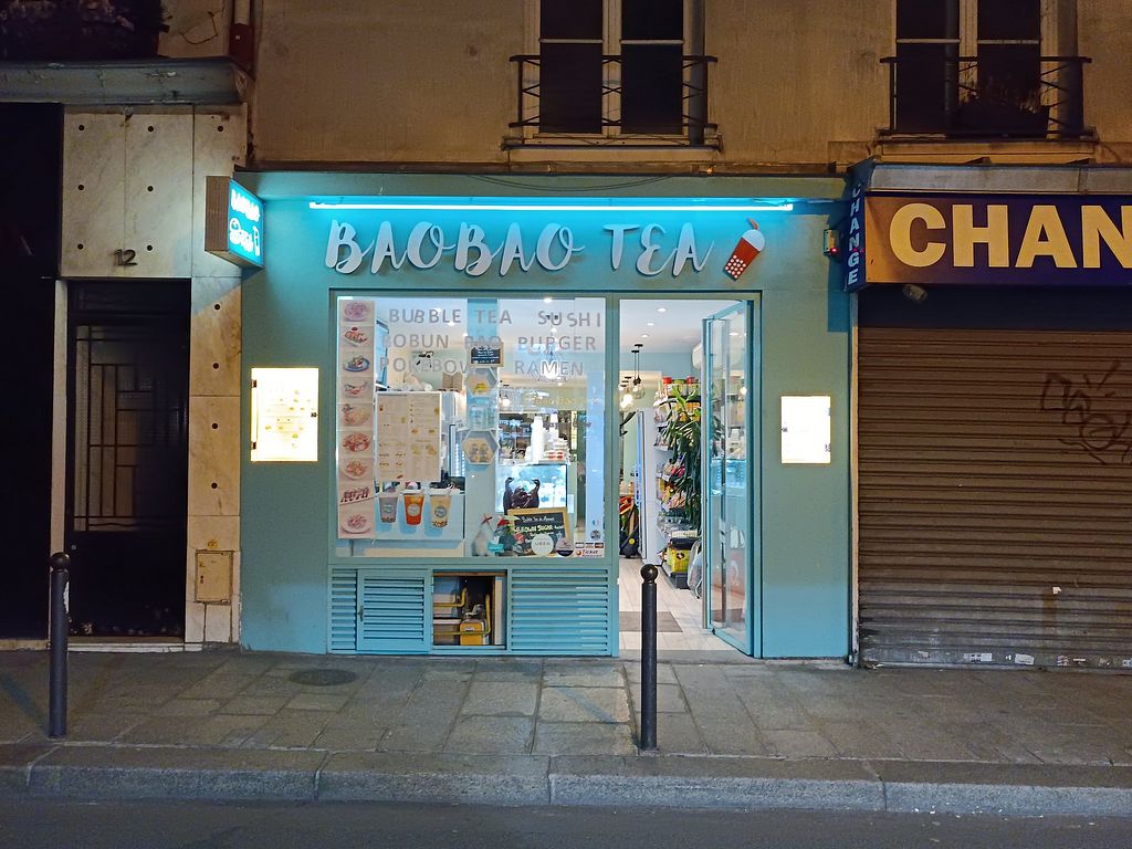 Serves meat, vegan options available. Vegan dishes include bao tofu, gwa bao tofu and tofu rice burger. Also serves bubble tea that can be made with soy milk. Reported closed April 2023.