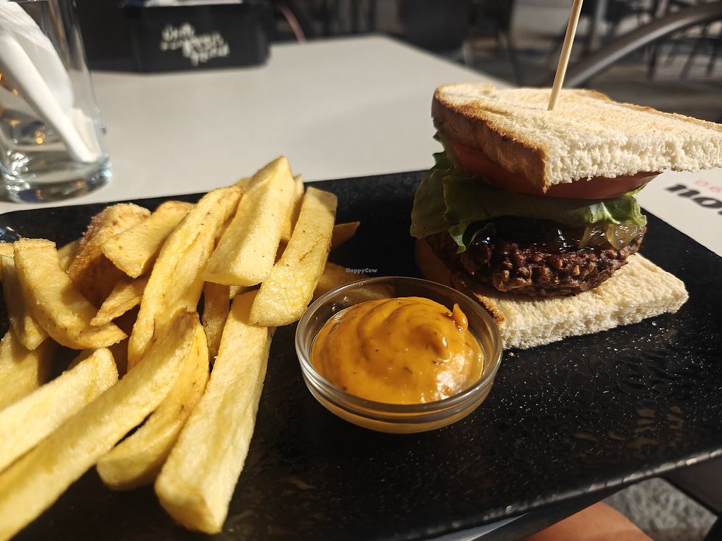 En carta tienen una hamburguesa vegana pero la sirven en pan brioche que lleva mantequilla. Pregunté para cambiarlo y me dijeron si quería la hamburguesa con pan de molde o pan de tostas. Elegí el segundo y la verdad me gustó. La hamburguesa viene servida con patatas y estaba muy rica.