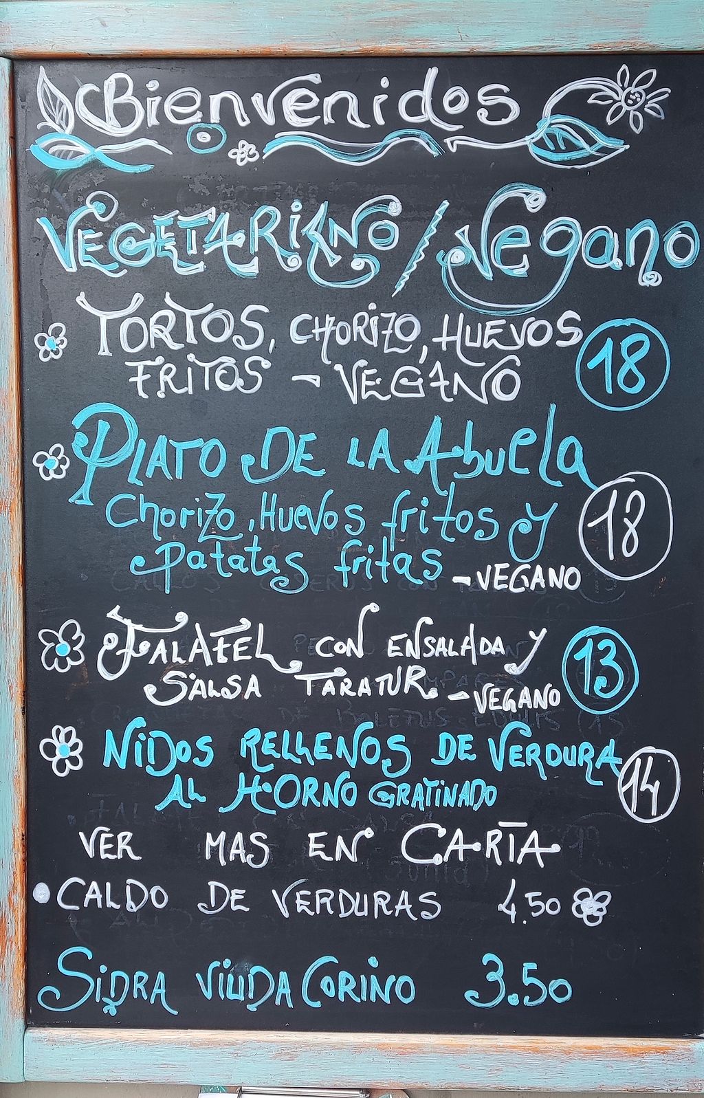 Serves meat, vegan options available. Local restaurant offers Asturian food and tapas, juices and smoothies. Has a vegetarian section on the menu with many vegan dishes. Sample selection includes salad, risotto, croquette, and pizza. Open Mon-Sun 12:00-00:00.