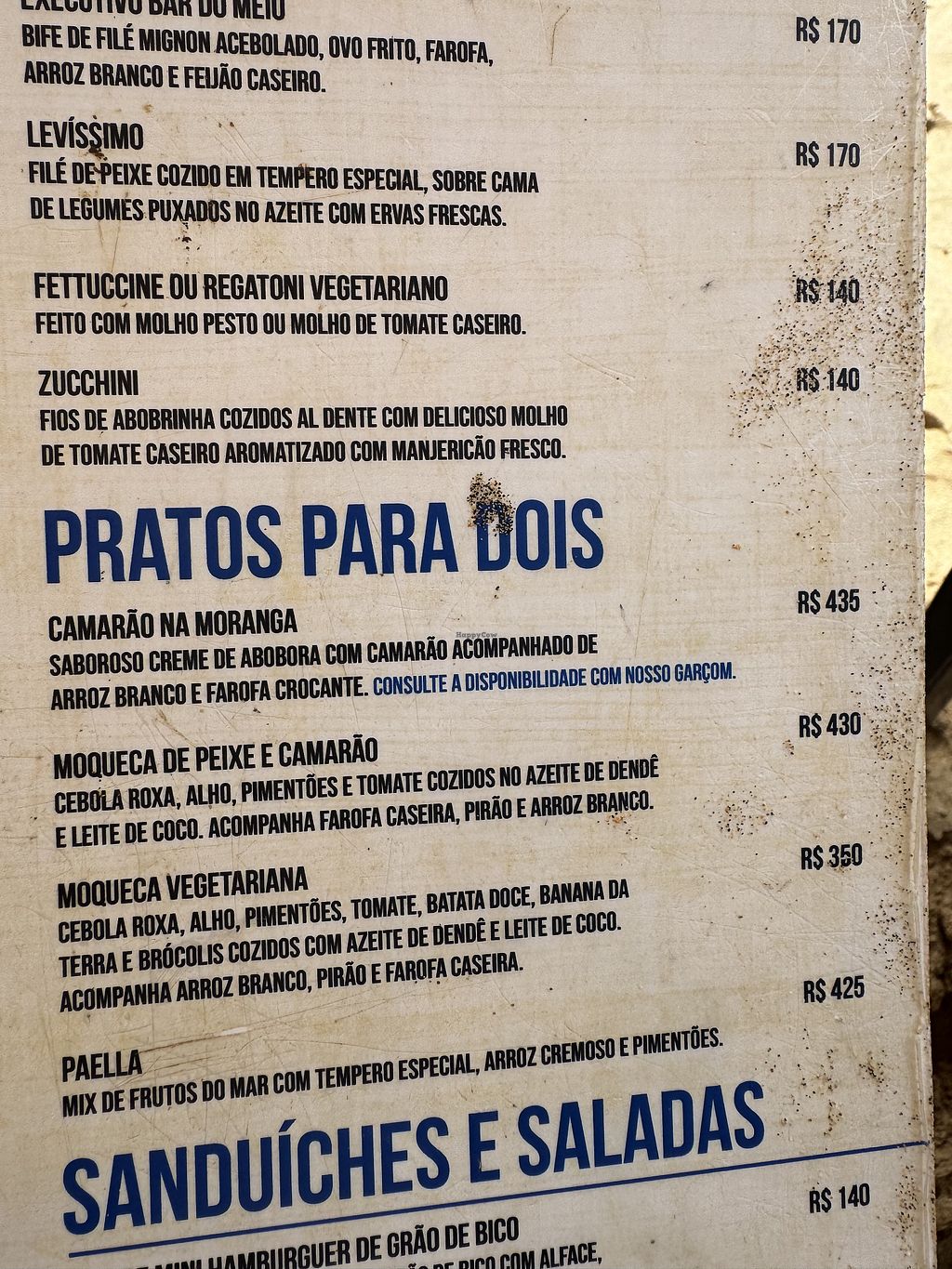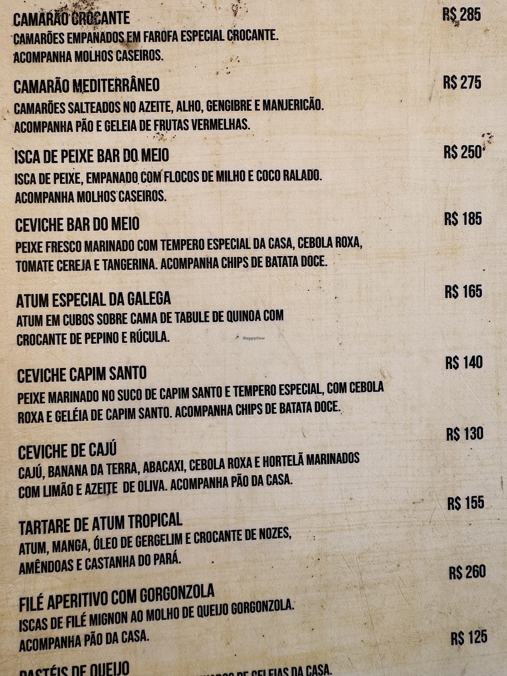 Serves meat, vegan options available. Bar and restaurant located at Praia do Meio offering vegan dishes such as cashew ceviche, vegetable moqueca, and fettutine ao pomodoro. Serves both in the restaurant and at the beach. Open Mon-Sun 12:00pm-9:00am.