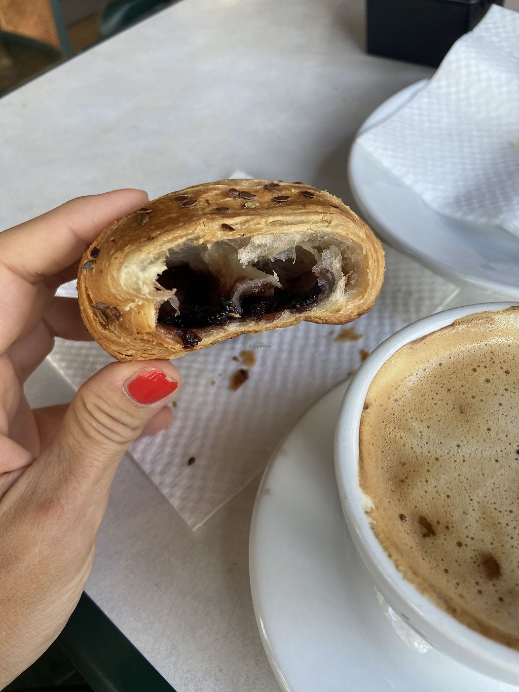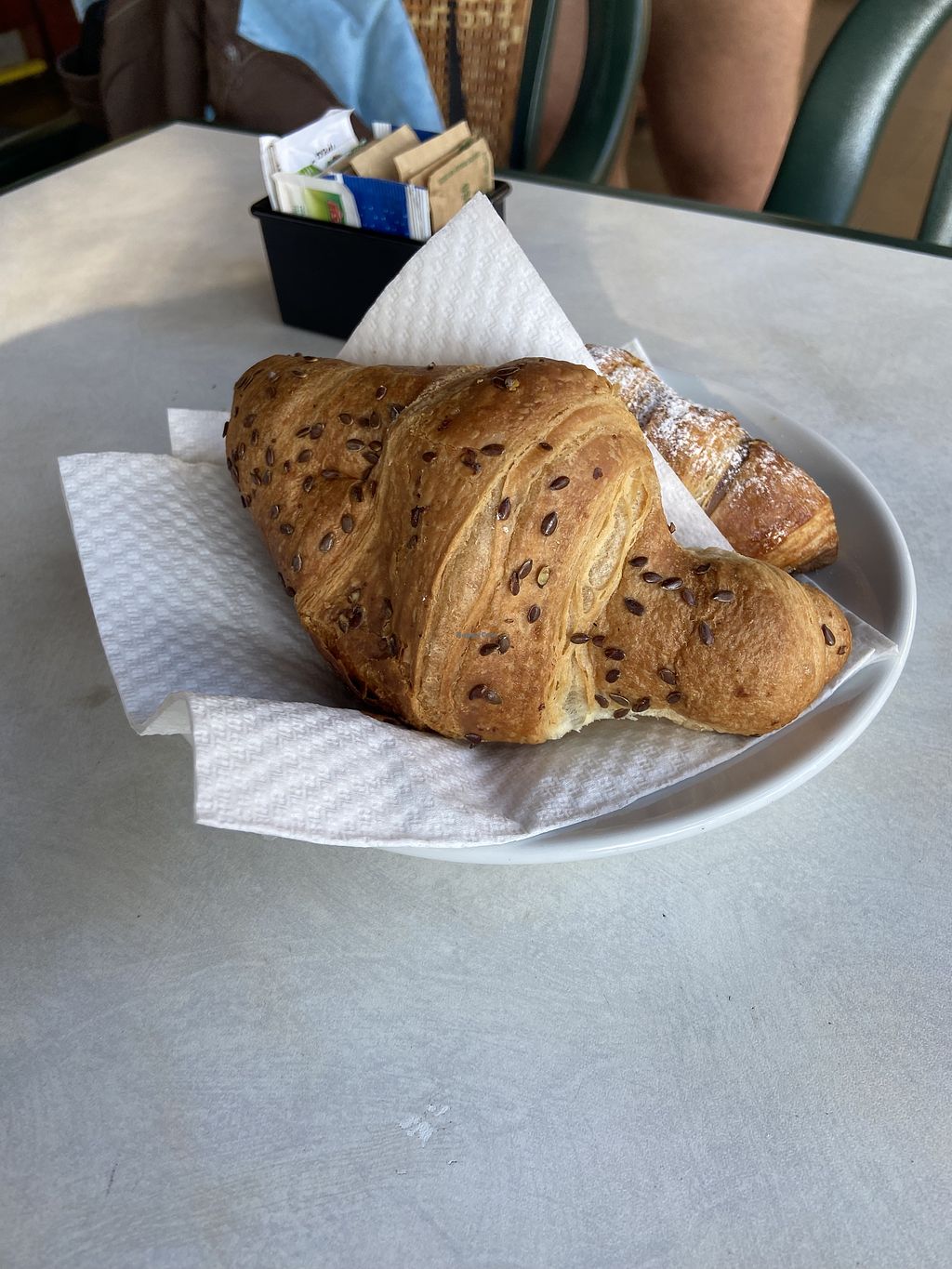 Rare place in here, they’ve got soy, oat and almond milk for coffee and two different vegan croissants at the time of the visit. Patio is nice.