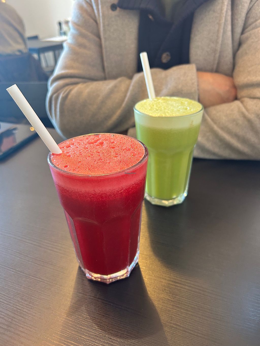 Loved the vegan breakfast with waffle and homemade lentil cake and hash brown. Delicious! Wonderful fresh juice as well! And oat milk flat whites.