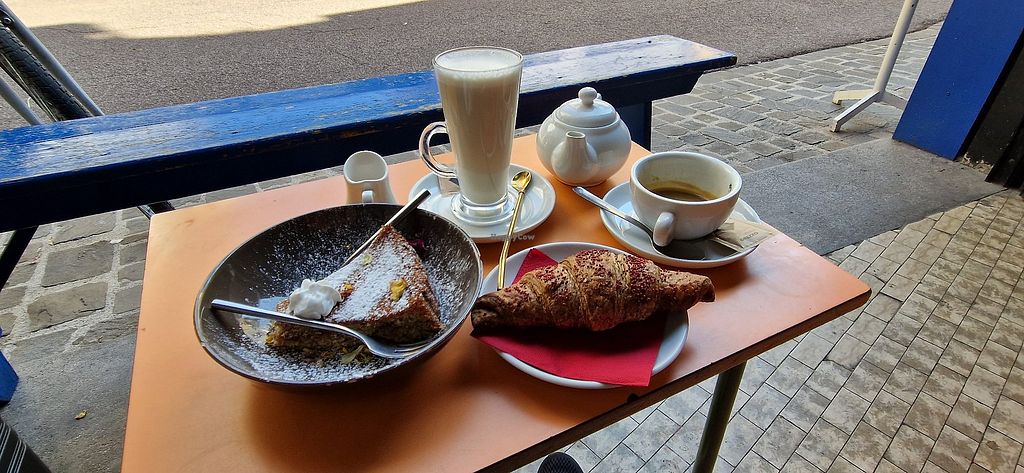 A casual, relaxed café that invites you to work quietly but also to drink coffee with friends. The service is super friendly and the coffee is delicious. There are also vegan crossaints with pistachio and chocolate cream, muffins, biscuits and other sweet pastries.