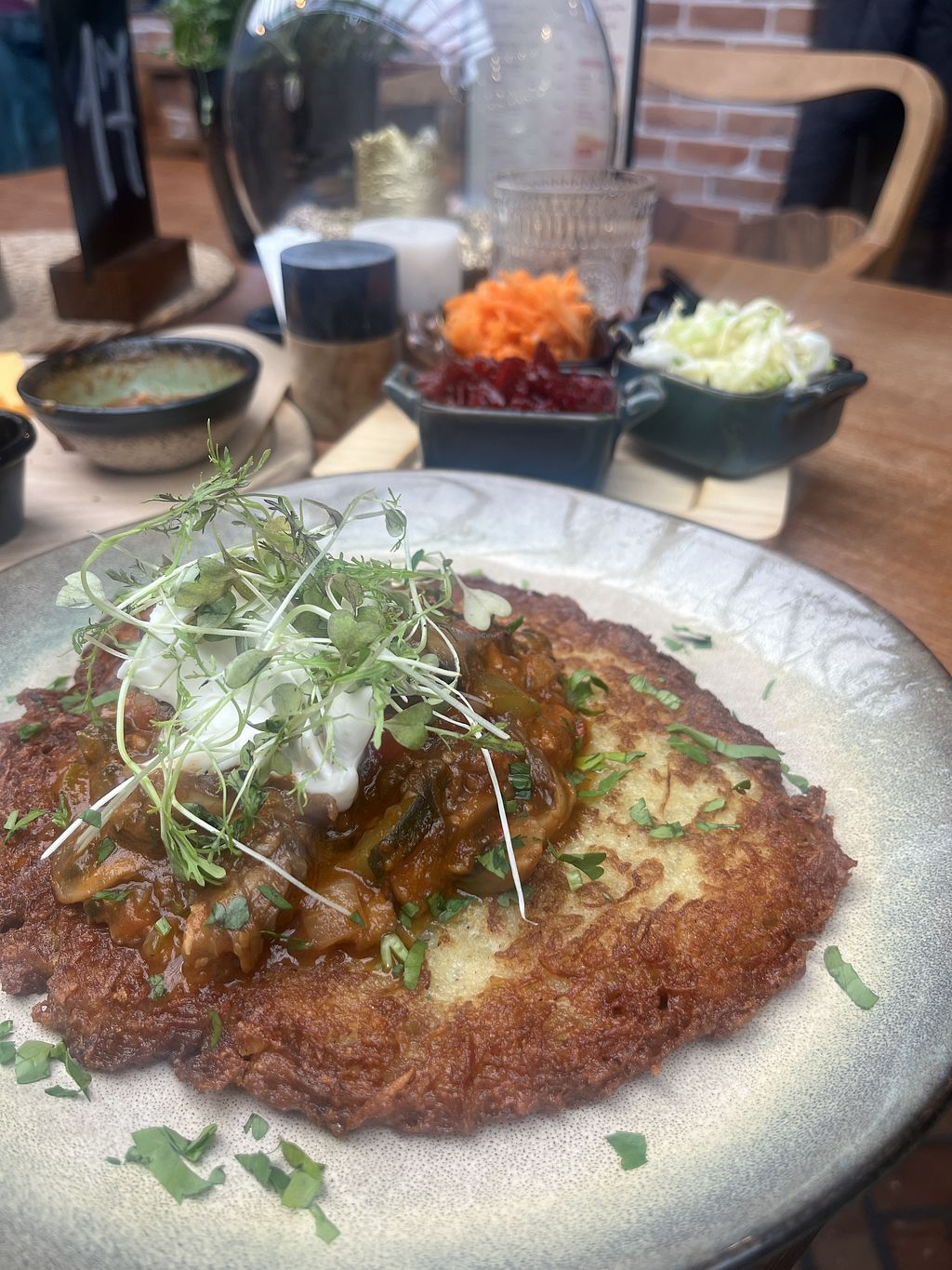 Pilzgulasch auf Kartoffelpuffer