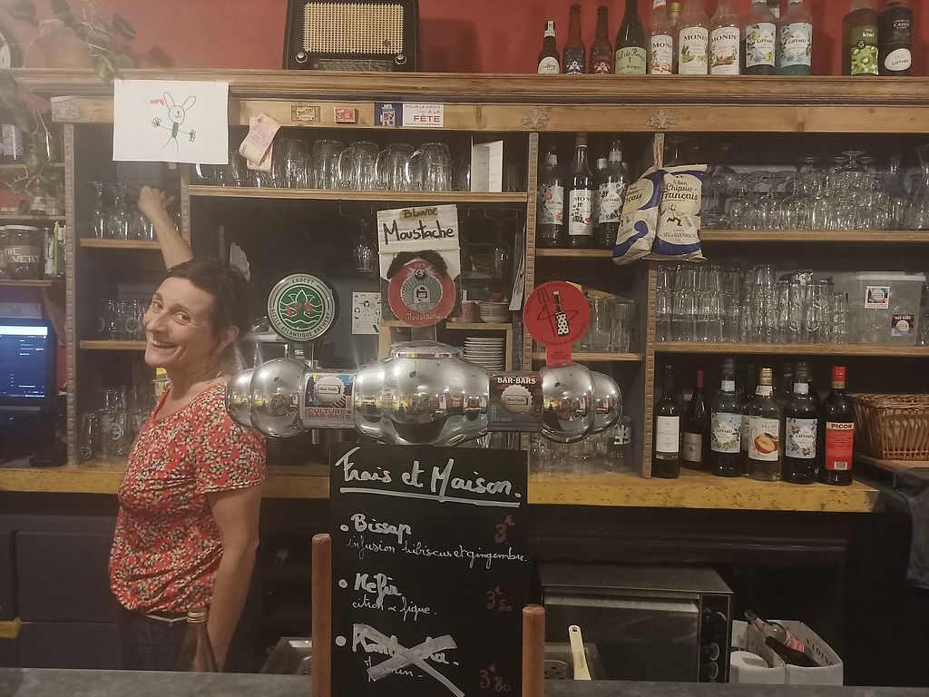 Serves meat, vegan options available. French bar offering some seasonal vegan menu options, such as hummus, broccoli-based guacamole, and dessert. Open Mon-Wed 17:00-22:00, Thu 17:00-23:00, Fri 17:00-01:00, Sat 18:00-23:00. May open Sundays for special events - check ahead.