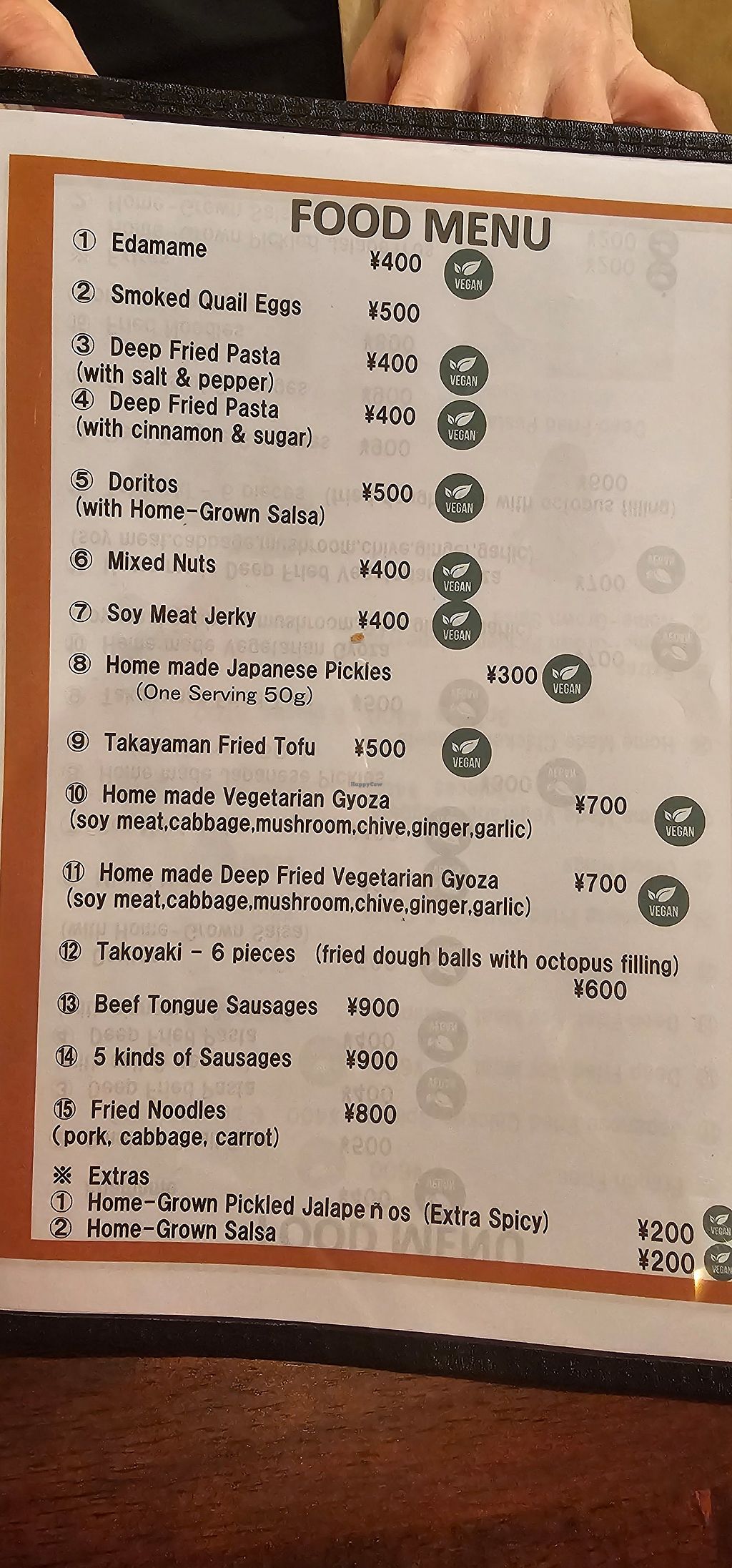 We stumbled across this place as it had a sign that said they had vegetarian gyoza. Turns out over half of their menu is vegan! The gyoza were phenomenal (we had regular and deep fried). We also had the deep fried tofu and soy chicken (with vegan mayo), both were really good. The deep fried pasta was a nice snack as we drank our beer. Lots of other apps to have with your drinks.