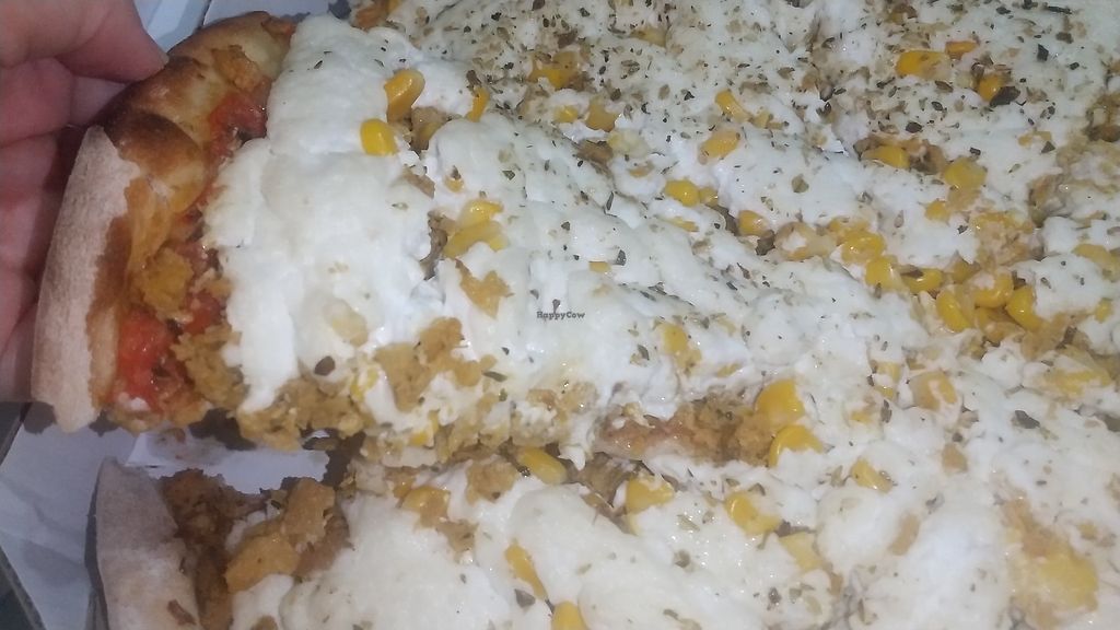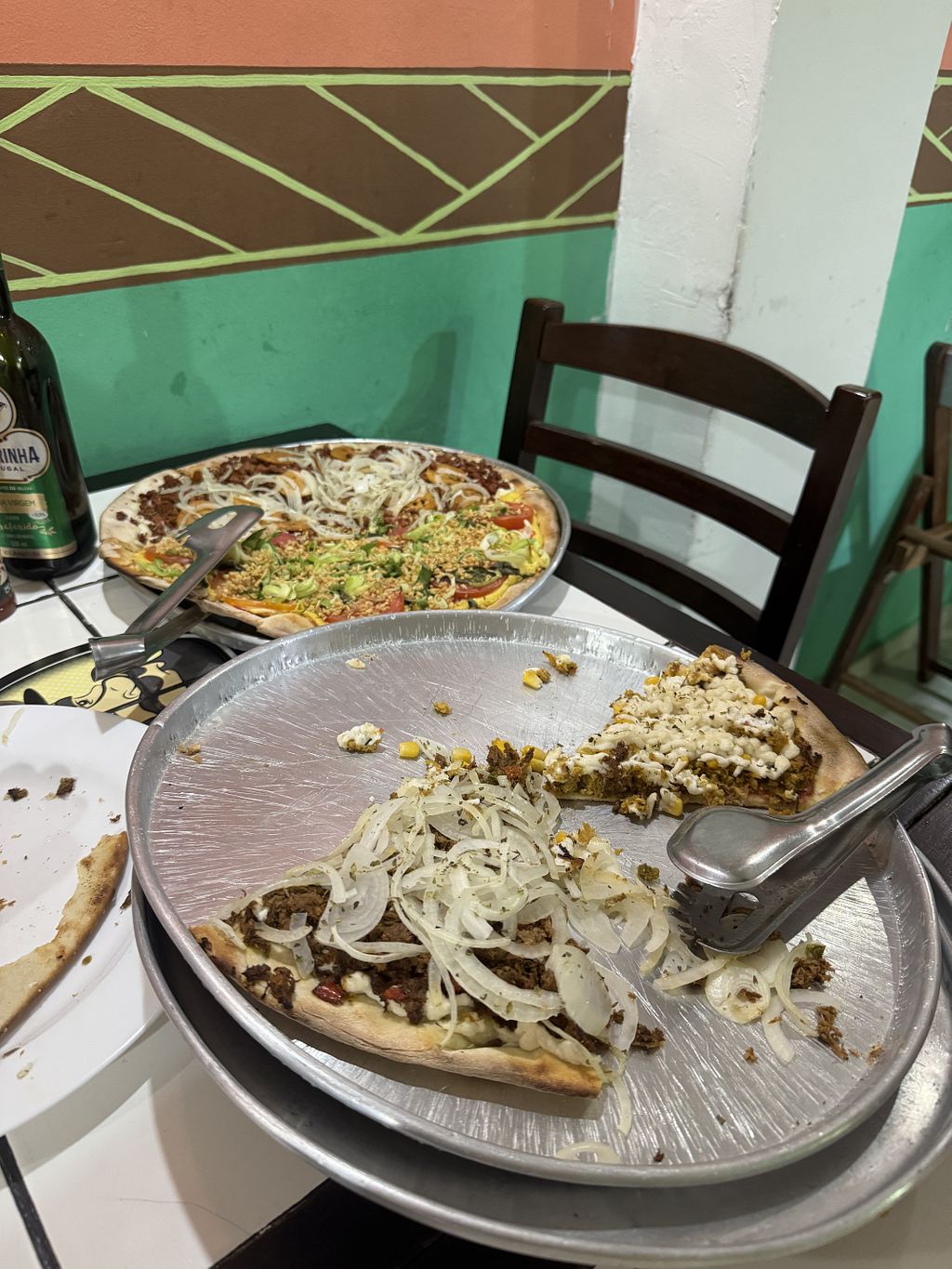 Vegan pizza - ''calabresa'' and ''lombo''.