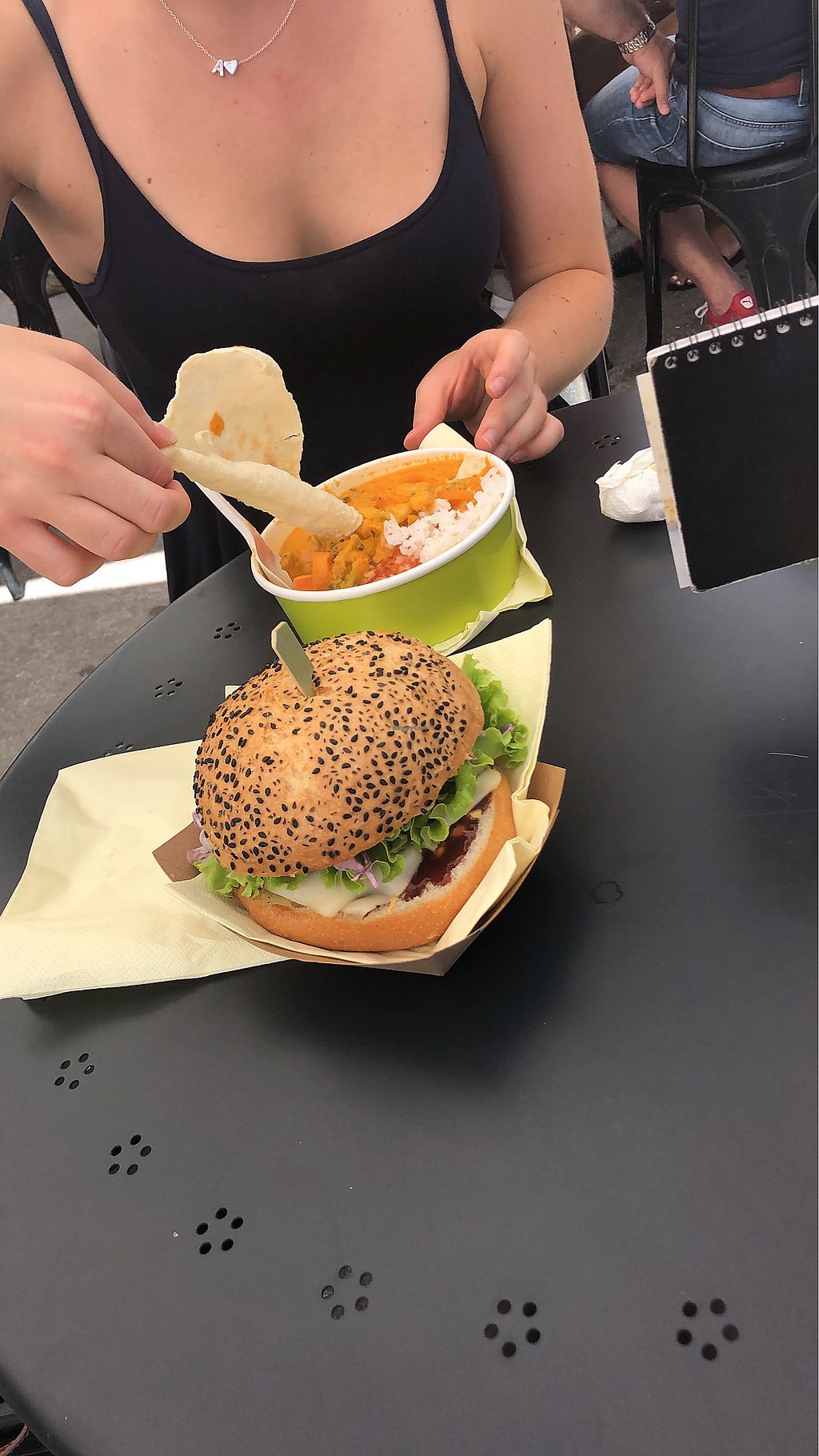 Vegan burger and curry