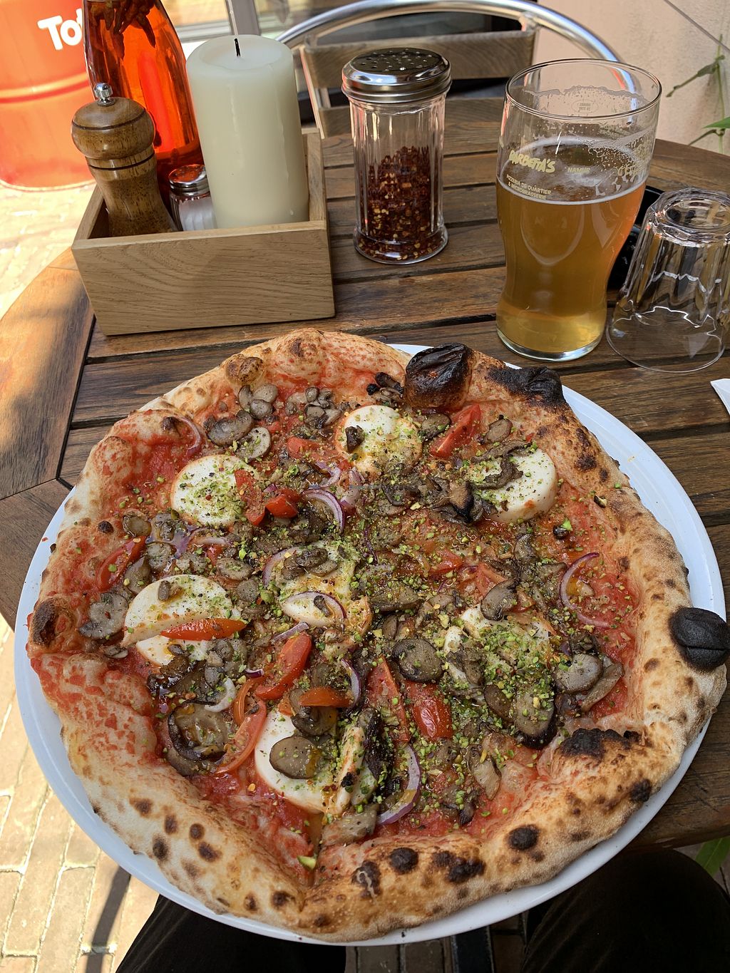 I went with colleagues for lunch and I was happy to taste their home made limonade. The pizza was wood oven baked, the crust tasty and the mozzarella pretty good.