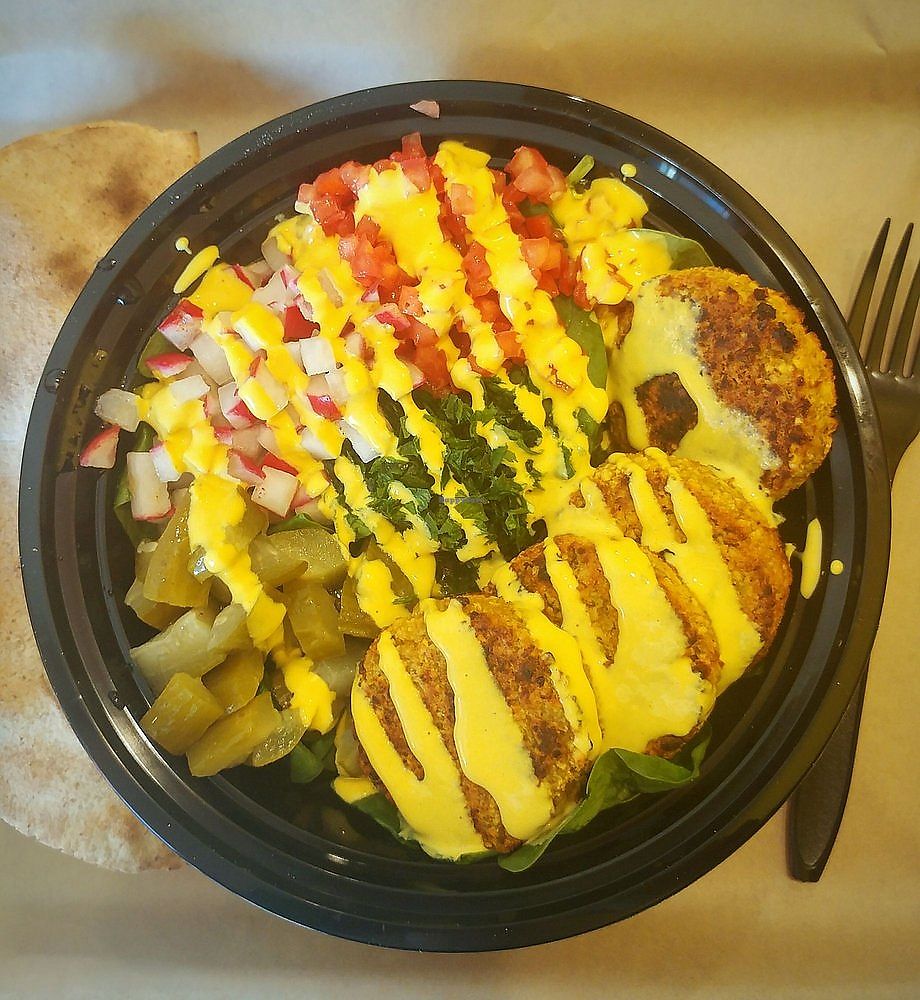 A ton of options for vegans. They have bowls & wraps & flatbreads. Can’t go wrong with anything you get (the spinach pie & hummus is amazing). A lot of their sauces are vegan too, which is rare to find!