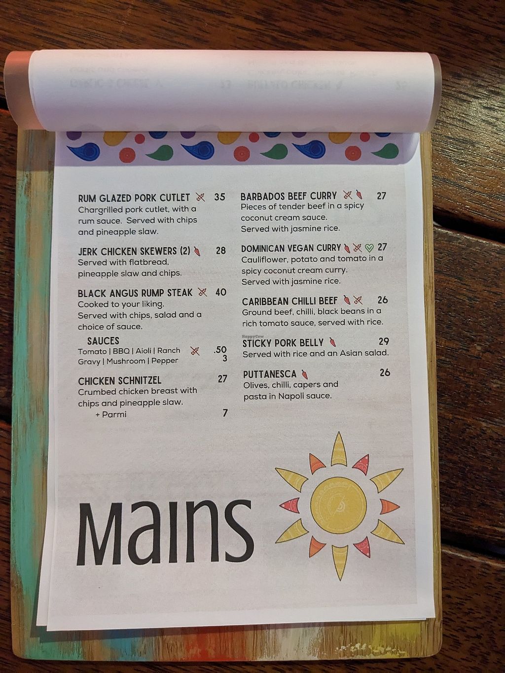 Serves meat, vegan options available. Caribbean themed bar and kitchen. Mainly omni with a handful of vegan and vegetarian options such as vegan loaded fries, vegan cauliflower and potato curry and other items which can be modified to be vegan. Open Mon-Thu 10:00am-1:00am, Fri 10:00am-2:00am, Sat 7:00am-2:00am, Sun 7:00am-1:00am.