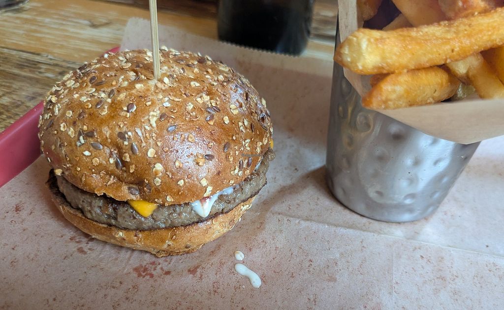 The "impossible standard" burger with garlic aioli and caramelized oni…