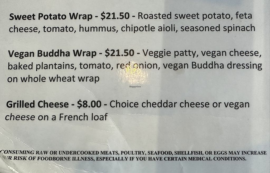 Sweet potato wrap is also veganizable if you remove cheese and aioli. …