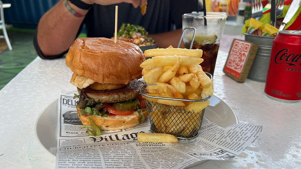 Great place. I love the vibe with lots of colourful decorations and plants. I had the vegan burger with fries, the taste was nice, and portion size was good.