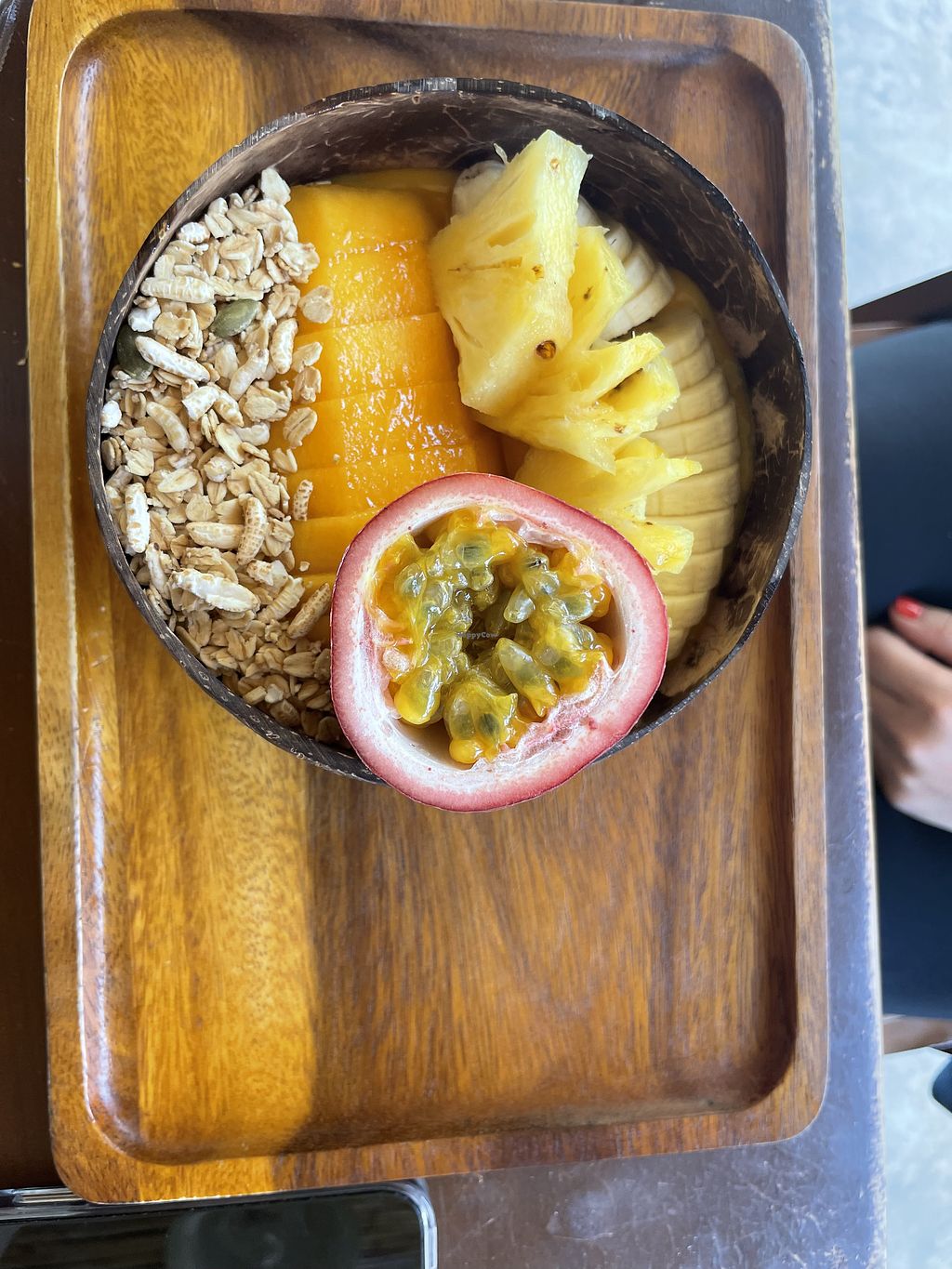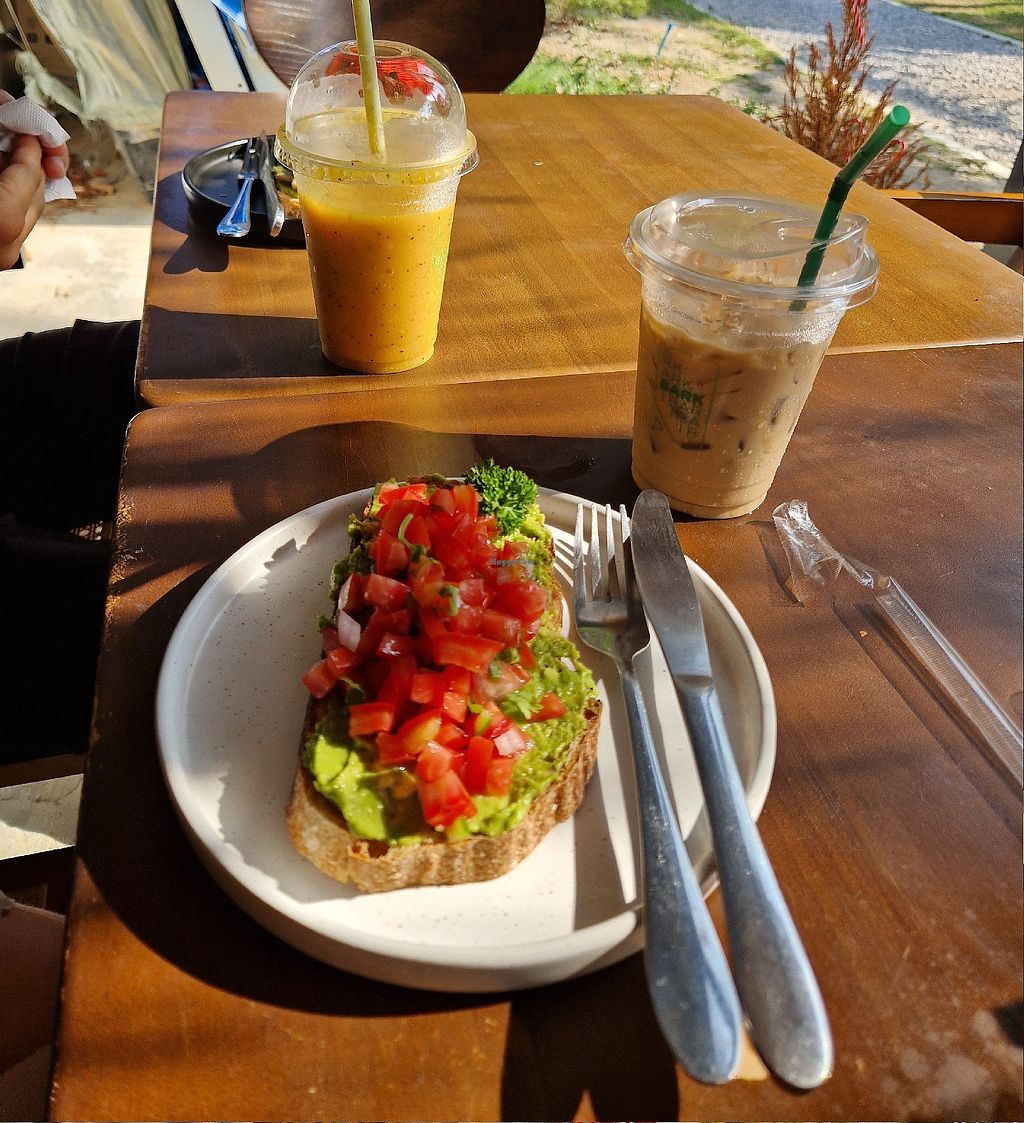 They will make a vegan toast with avokado and tomato or mushrooms. It was tasty and so nice to have breakfast options in the area. Smoothie bowl and coffee was good!
