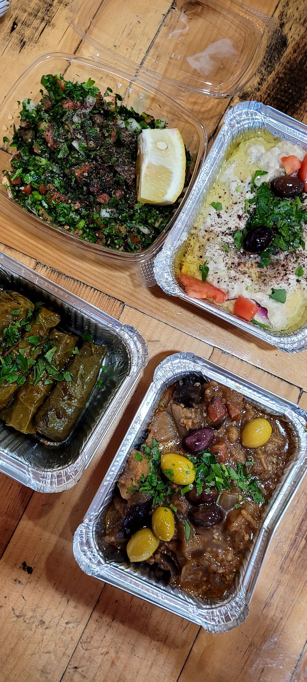 Serves meat, vegan options available. Lebanese restaurant with clearly labeled menu. Example vegan offerings include hummus, tabbouleh salad, falafel, pumpkin kibbeh and more. Mostly takeaway - limited seating available. Open Mon-Fri 11:30am-8:30pm, Sat-Sun 12:00pm-8:30pm.