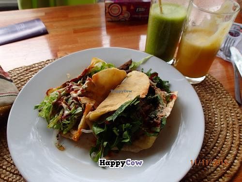One of the nice dishes. A vegetarian burger with fried potatoes.