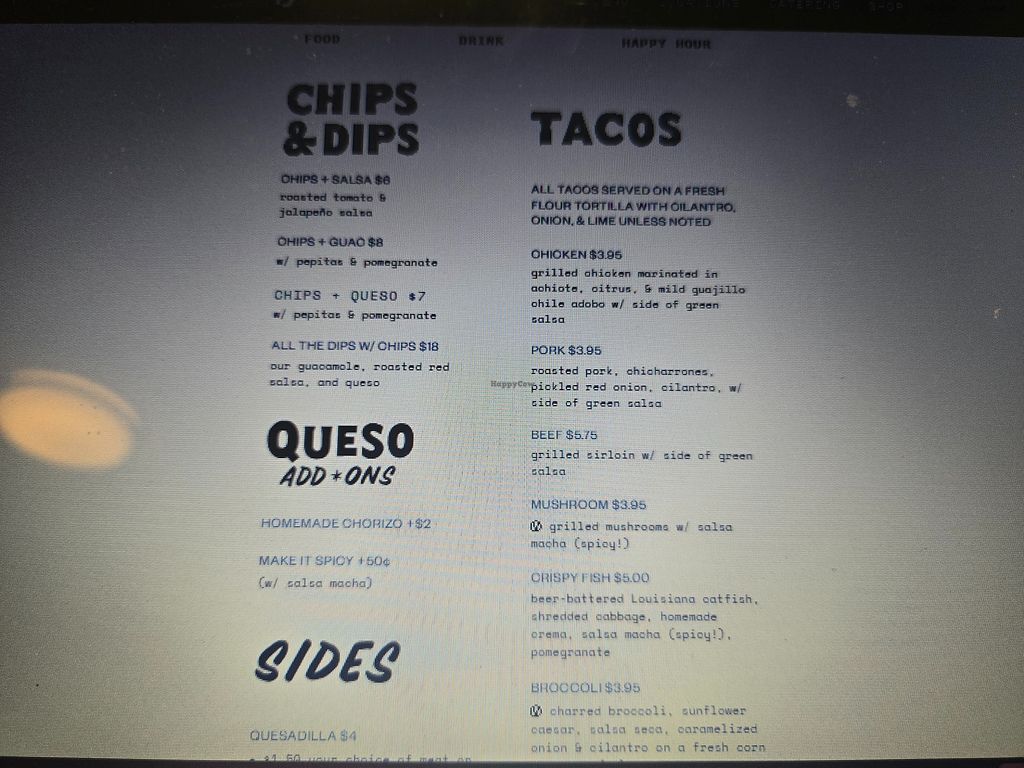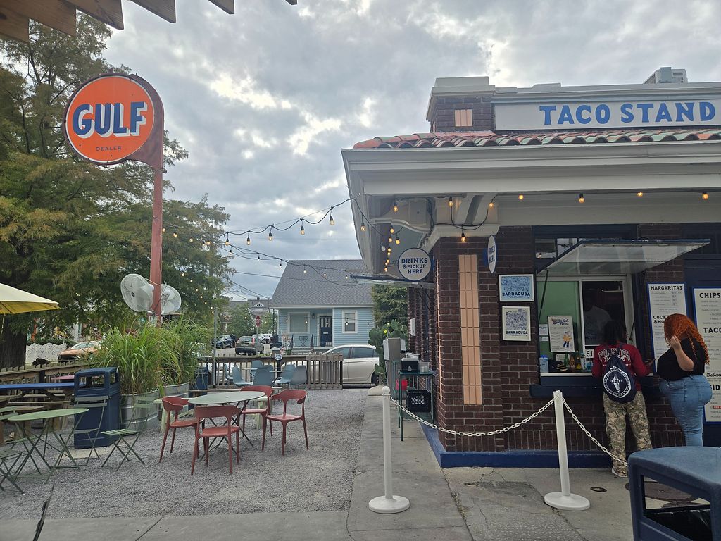 Seriously cute taco "stand" which appears to be an old filling station with fun memorabilia. Vegan tacos and bowls available. I had the most delish guacamole I've ever had - complete with pomegranite seeds. Very fresh and very prompt service.