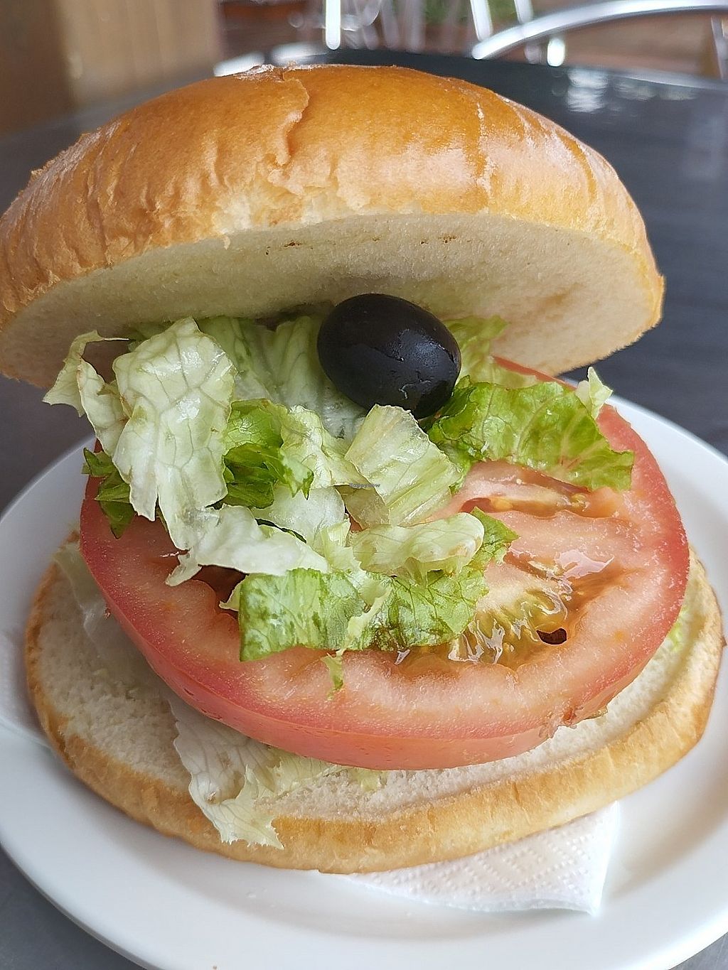 Chips to share and 1 soya burger and 1 carrot and seaweed burger.