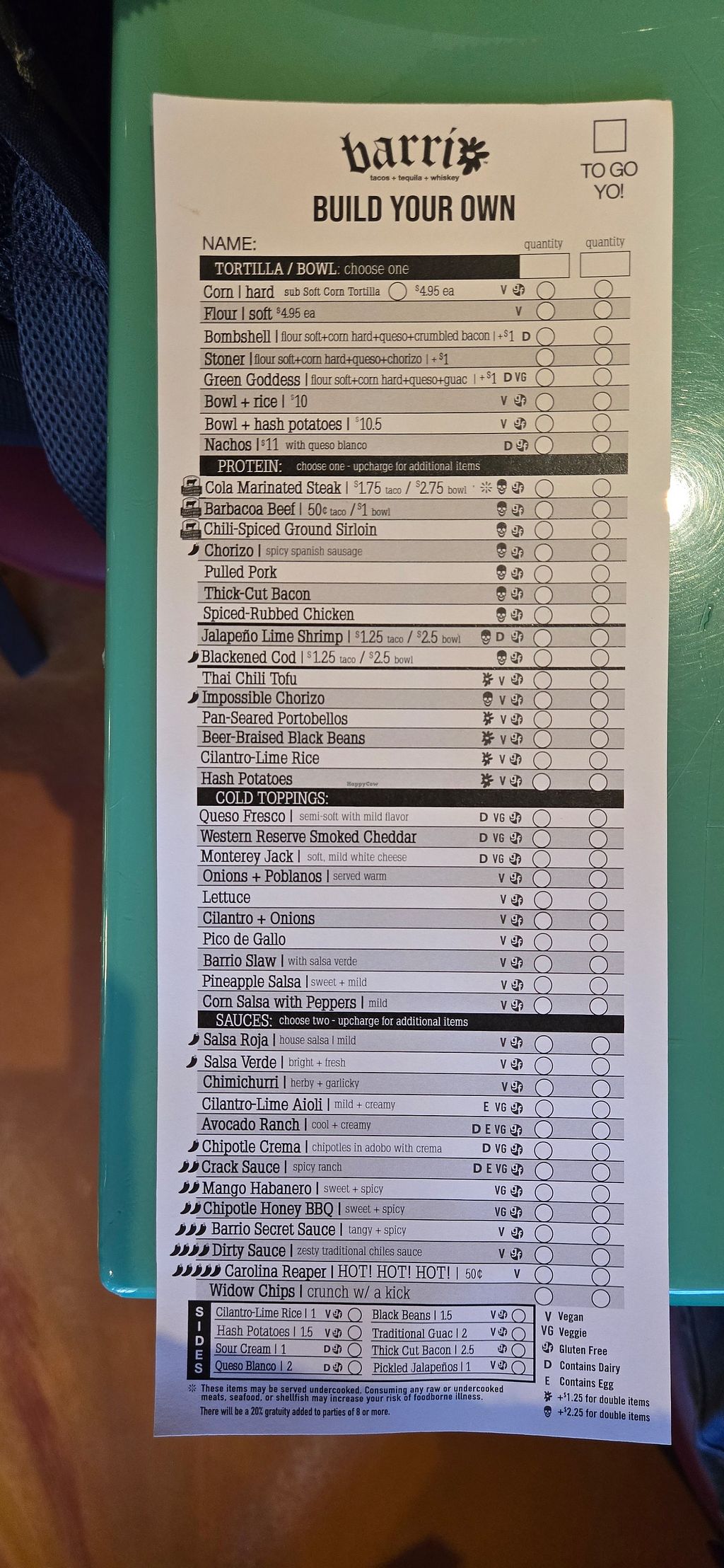 I love the mushroom Taco called the Vegano. It was a very filling Taco for the price. I also had a black bean taco using their 'build your own taco' menu. It was equally as delicious.