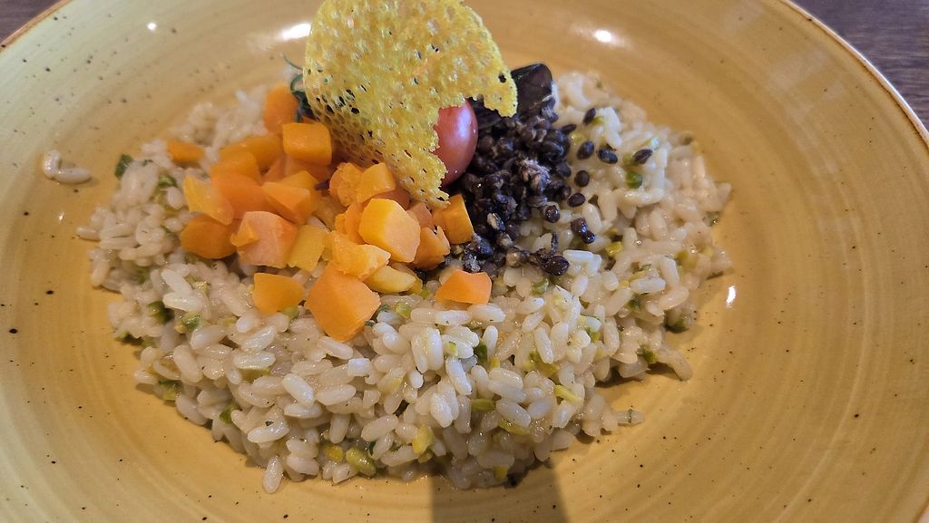 On the main street in the center with the possibility of sitting outside. They have a larger selection of dishes for vegans and vegetarians. Friendly staff. They were willing to adjust my food to my wishes without any problems. The food was good, but I think it's more expensive, I paid 50CHF for salad and risotto. Vegetarian dishes are marked on the menu with a note, so you don't have to study everything carefully. I'm attaching photos of the menu with their selection.