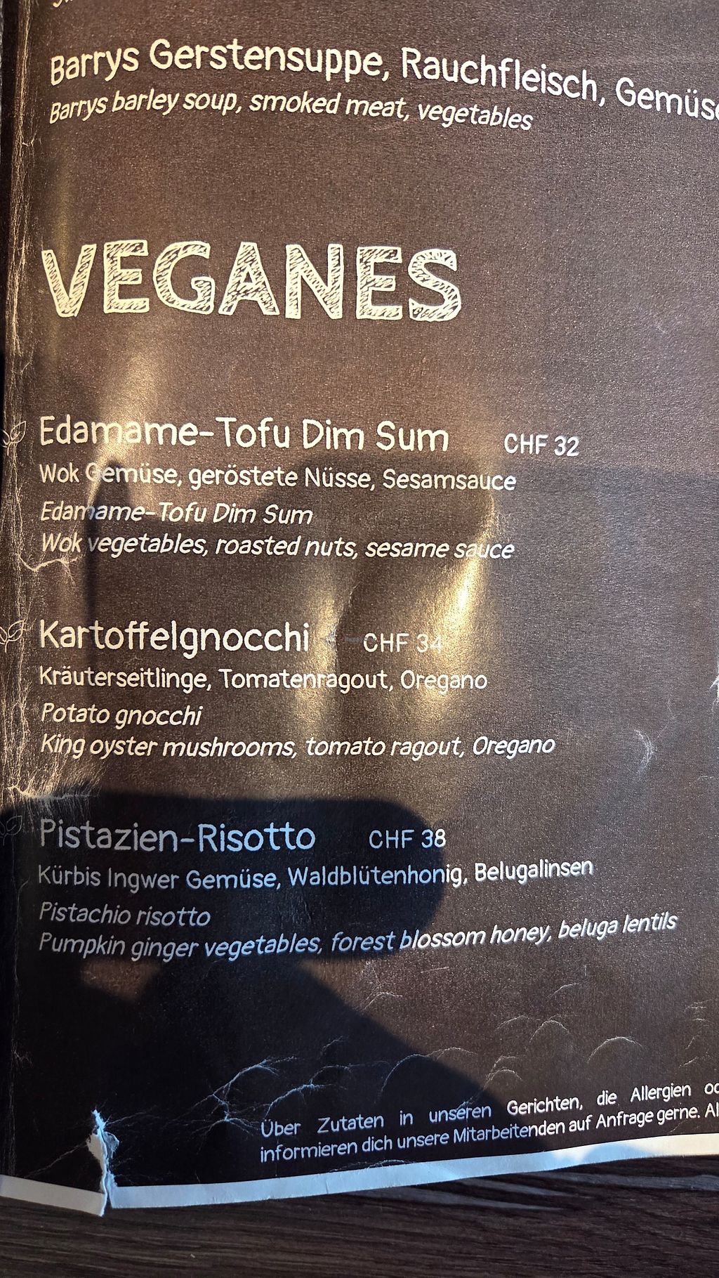 Three marked vegan main dishes now. Expensive even for Switzerland - Edit