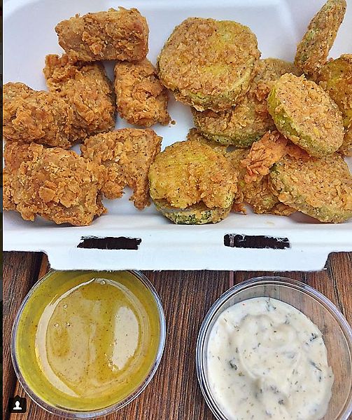 original nuggets and fried pickles "honey" mustard sauce and ranch