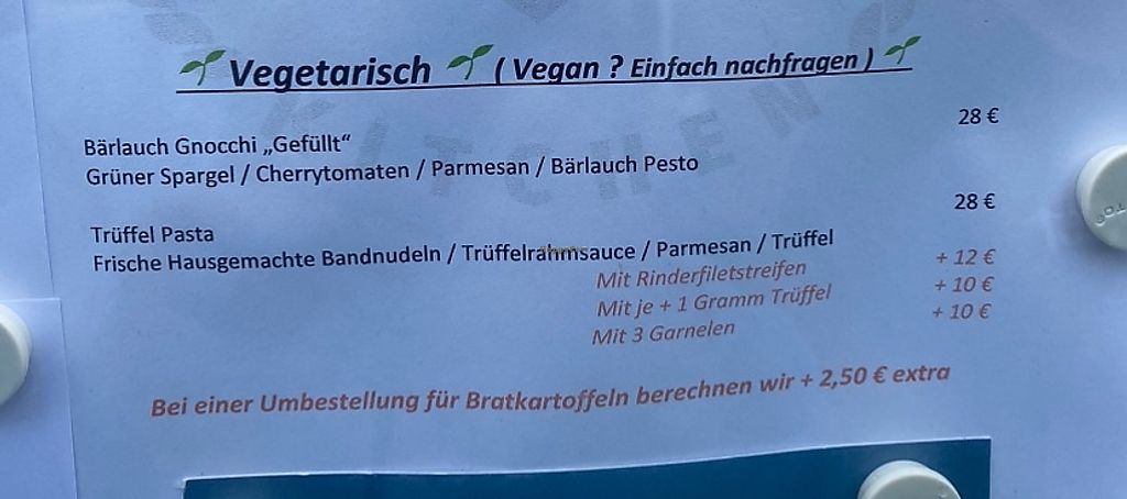 Wir haben auf der Karte zwei vegetarische/vegane Gerichte gesehen und sind dort zum Essen gewesen. Die Kellnerin war sehr freundlich und fragte in der Küche nach, was vegan an diesem Tag möglich war.