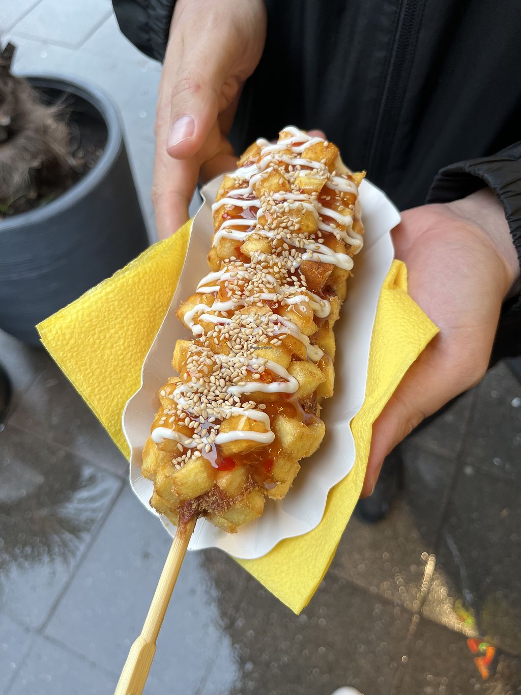 This vegan corn dog was absolutely amazing! The crispy potato coating on the outside added a perfect crunch and unique flavor that made it stand out from any other snack I’ve tried. The vegan sausage inside was juicy and full of taste — you’d never guess it’s plant-based! Everything was perfectly cooked, not greasy, and super satisfying. A delicious, creative, and totally crave-worthy vegan option — highly recommended! 🌱
