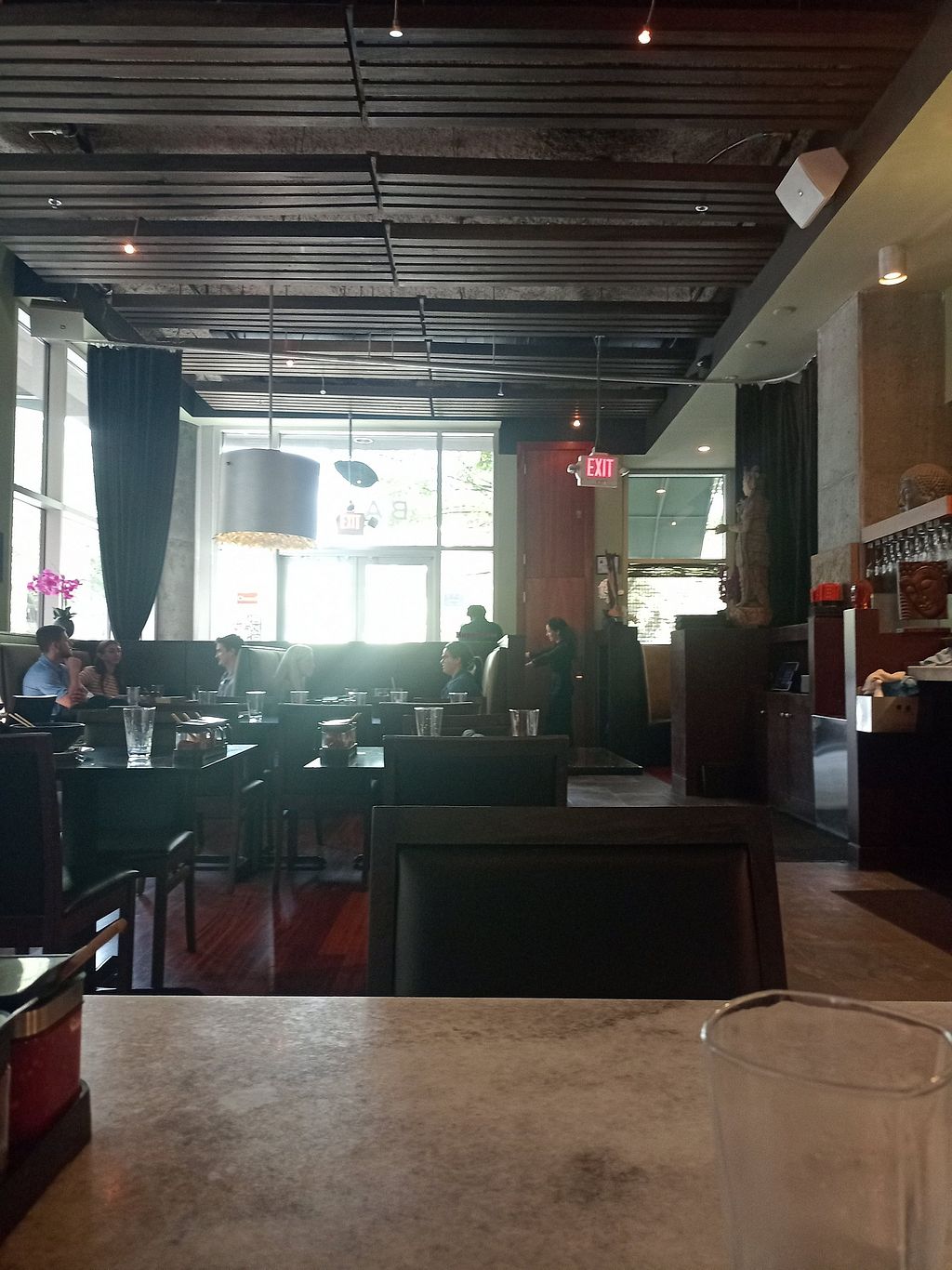 Not great in terms of vegan options, very expensive for what it is, and there are certain things they will not modify. However, if you are going with a group and everyone wants to eat here, it is possible. Most of the curries and noodles have fish sauce and they are not willing to modify it. I was able to get the basil roll without shrimp and my husband (vegetarian) got fried rice. It was good and my husband was happy with his dish and the portions were large.